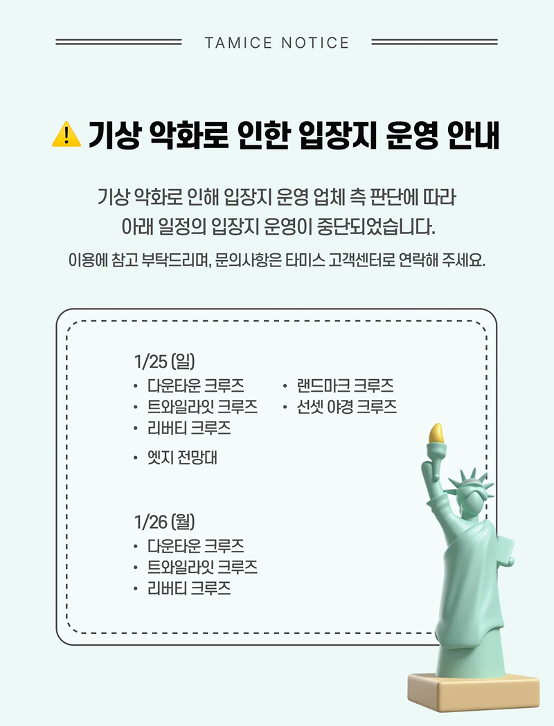 * You can also check the remaining seats at the Tamis office, so please inquire via Tamis KakaoTalk before going to the Circle Line pier ticket booth.