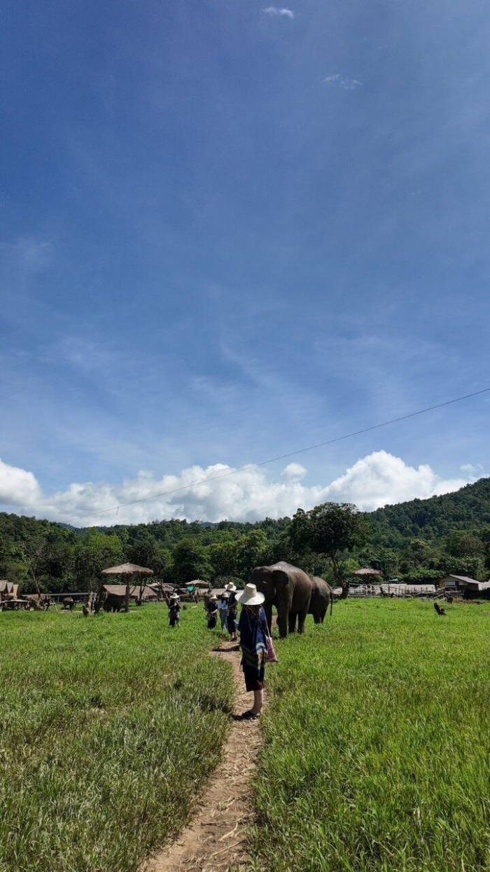 You can enjoy a leisurely and special day by feeding elephants and taking a walk with them in a peaceful space with green nature.