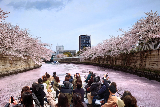 Experience the Meguro River cherry blossoms from a unique vantage point on a cruise. While viewing cherry blossoms from the riverbank offers a one-dimensional perspective, being on the water allows you to traverse through the heart of the blossoms with a continuous view on both sides. This cruise leaves a lasting impression because the scenery constantly changes throughout the 70-minute journey. The cherry blossoms appear closer and then farther away, and the view opens up and then is covered again by the blossoms as the river curves. You'll naturally capture the rhythm that is easily missed on a walking course from the boat.
