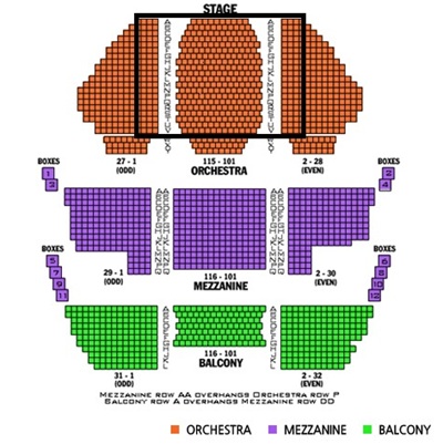 販売座席:座席は1階オーケストラ席中央セクションに割り当てられ、添付された写真を基準に四角ボックスの内側区域に該当します。