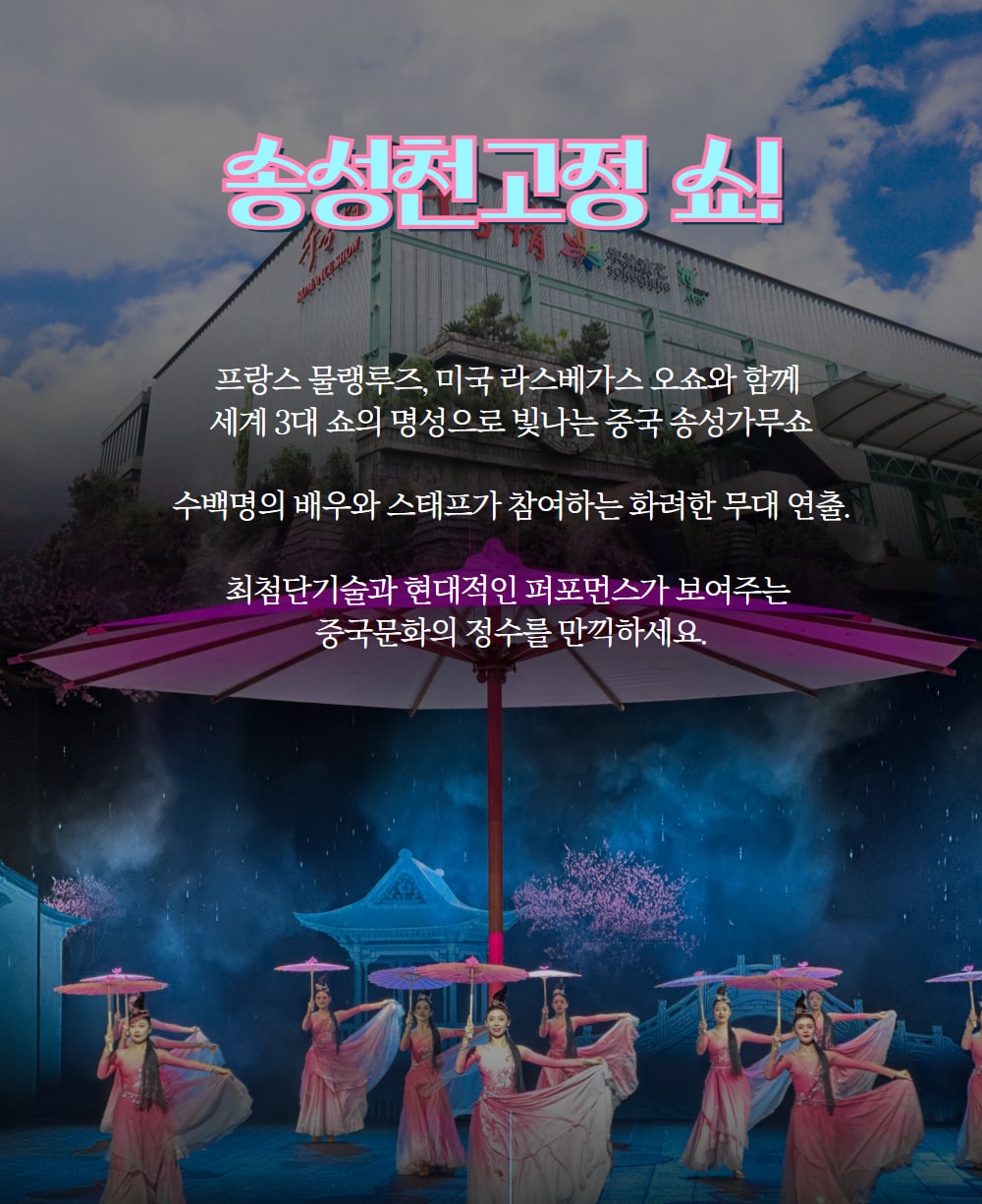 それでは、中国の文化がたっぷり溶け込んでいる素敵なショーとテーマパークを鑑賞しに行ってみましょう?
