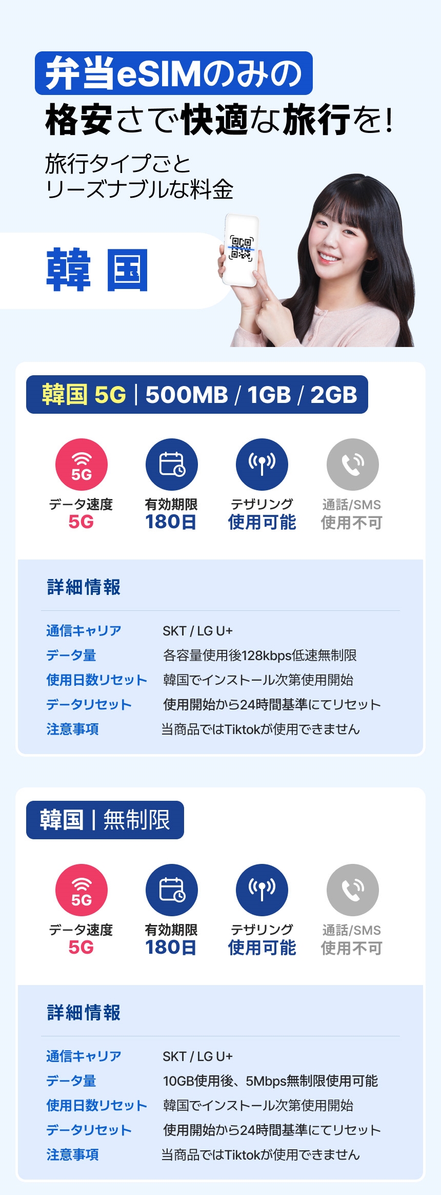 ご注文後24時間以内にQRコードをお届けし、受け取る必要なくすぐにご利用いただけるeSIMをご紹介します。既存のSIMカードを取り外して別途保管する必要がなく、破損、紛失の心配がなく、より便利にご利用いただけます。リーズナブルな価格で現地のデータのみを購入して利用できるのが魅力です。購入後、QRコードですぐに携帯電話に登録して使用してみてください!