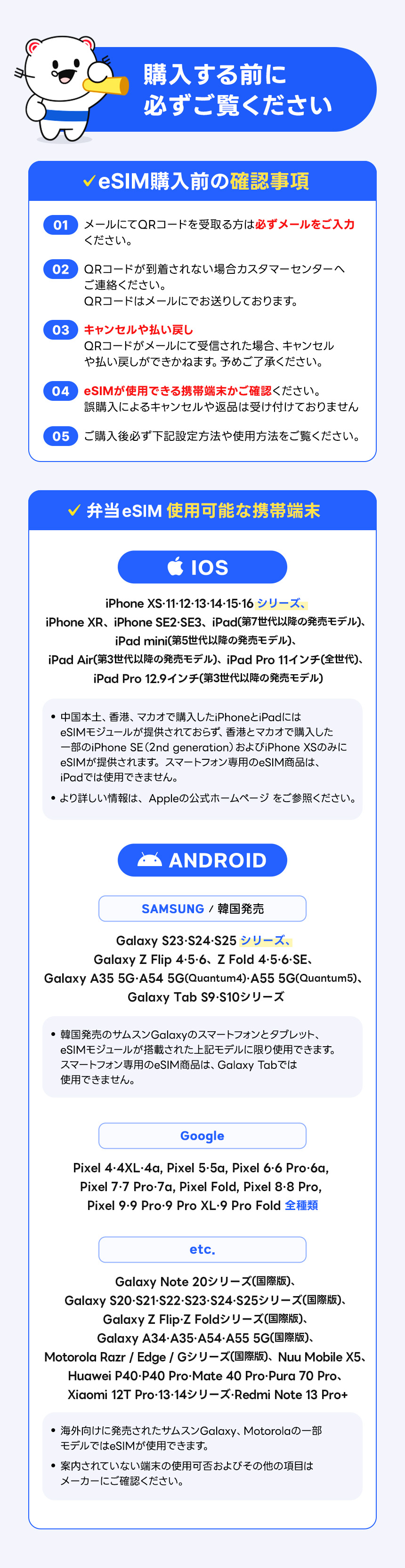 韓国で発売されたサムスン(ギャラクシー)携帯電話は、eSIMモジュールが搭載された上記のモデルに限り使用可能です。