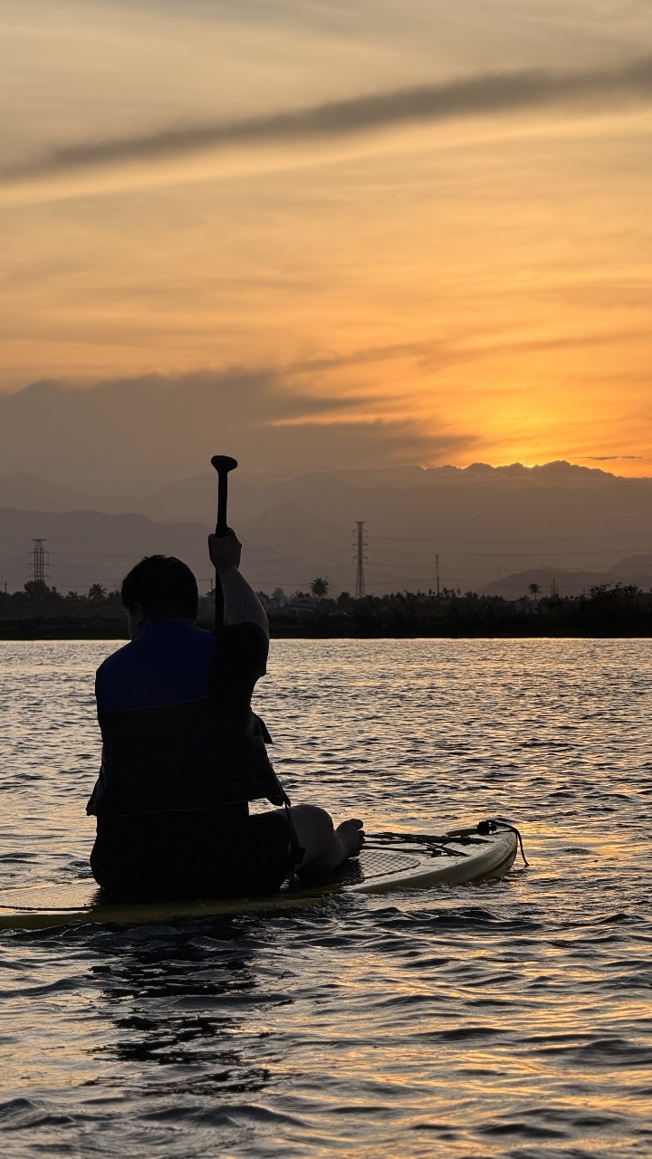 パドルボードの上からカイ川の夕日を鑑賞し、ゆったりと癒される時間をお過ごしください!