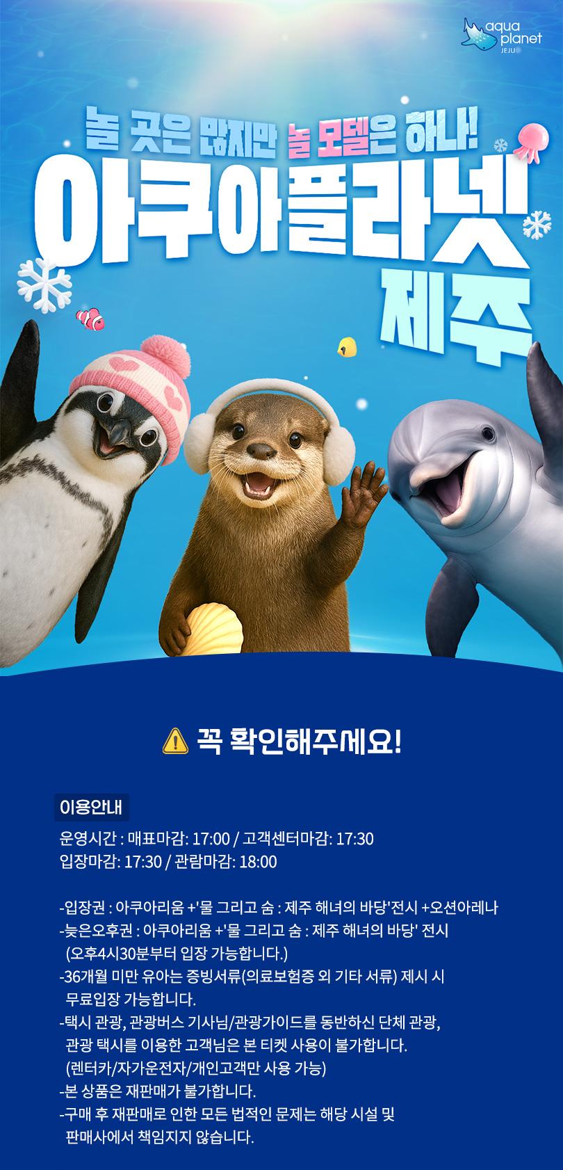 제주 아쿠아플라넷 입장권 & 늦은 오후권