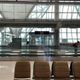 이미그레이션 입구 근처 D5 항공기 도착 게이트 건너편에서 검은 양복 상의를 입은 스탭이 대기