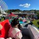찻잔 모양의 놀이기구에 탑승해 회전하는 어트랙션