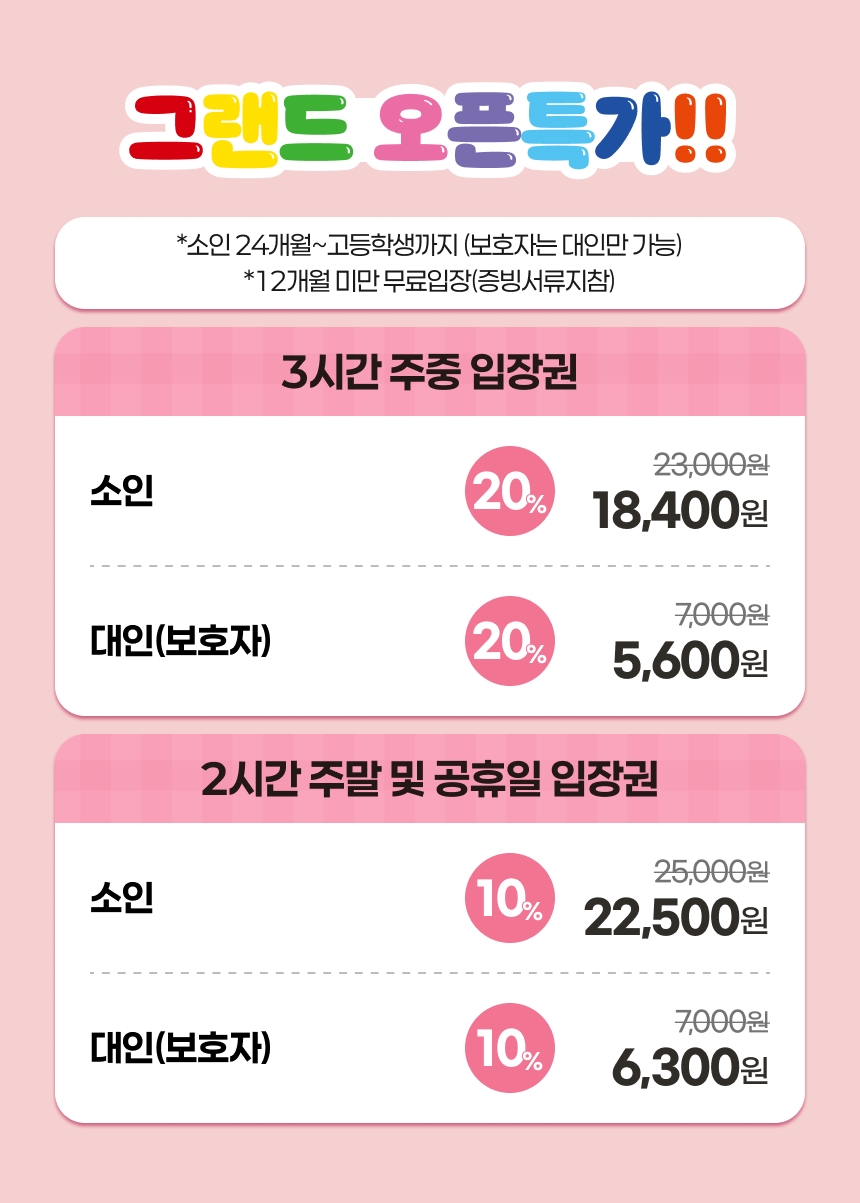 날씨와 상관없이 쾌적하게 이용 가능한 실내 키즈랜드로, 주말 나들이는 물론 방학 시즌, 생일 기념 방문, 가족 단위 하루 코스로도 제격이에요!