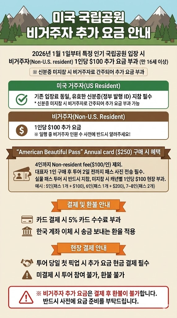 한국어 제공❣️라스베가스 매니아가 제공하는 특급 서비스 라스베가스 매니아 한인 가이드 투어를 이용하시는 경우, 라스베가스 공항에서 묵으시는 호텔 (라스베가스 스트립/다운타운 라스베가스 내)까지 무료 픽업을 진행해드립니다. 투어 출발 확정 후, 저희 라스베가스 매니아 카카오톡(카카오톡 ID : lasvegasmania)으로 무료 공항 픽업 신청 요청 주시면 진행 도와드립니다. 공항에서 픽업 후 바로 투어 출발은 어렵습니다! 공항에서 호텔까지 모셔다드리는 서비스를 무료로 제공하고 있습니다. ❣️라스베가스 프리미엄 아울렛 할인쿠폰 증정 라스베가스 노스 프리미엄 아울렛과 라스베가스 사우스 프리미엄 아울렛에서 VIP 쿠폰북으로 교환하실 수 있는 브로셔를 투어 고객님들께 증정해 드립니다.