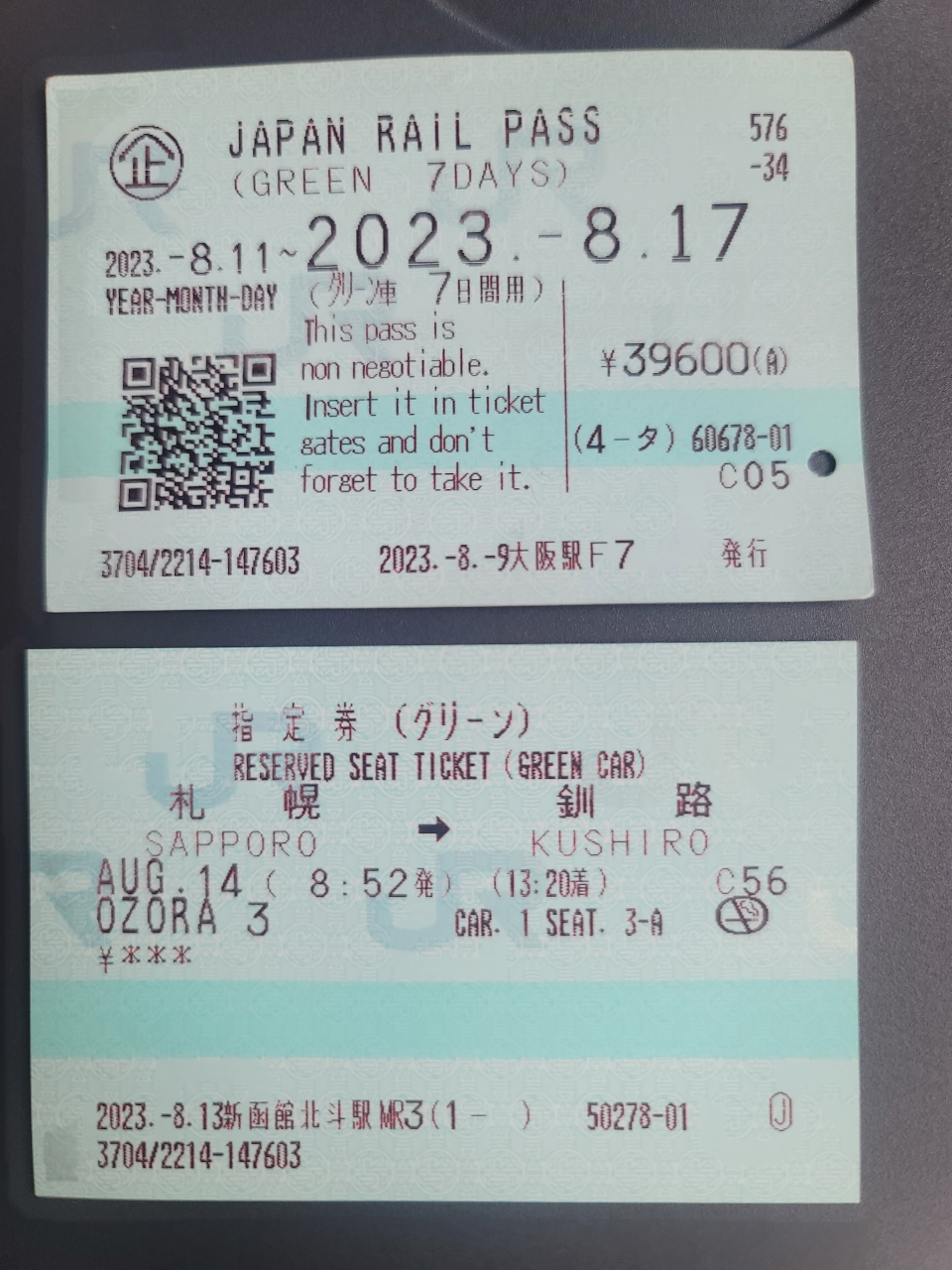 JR 전국패스의 특급권 + 침대권을 추가로 구매해야해요. 현장에서 구입 가능해요.