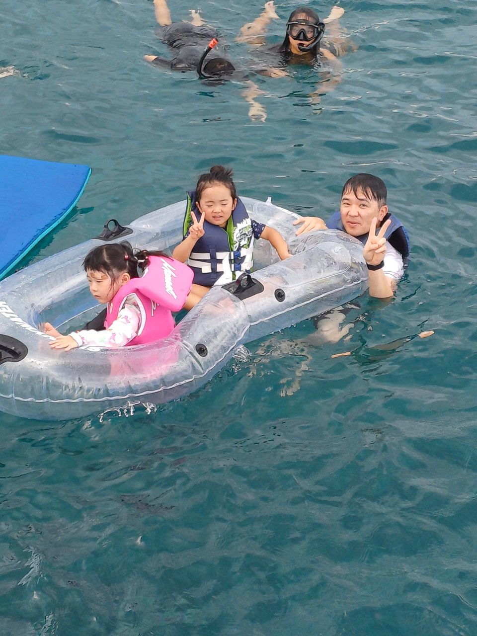 물을 무서워하거나 스노클링을 할 수 없는 어린이 손님들을 위해 어린이용 투명보트가 준비되어 있어요. 투명 보트 위에서 바닷속을 들여다보는 것도 꿀잼!