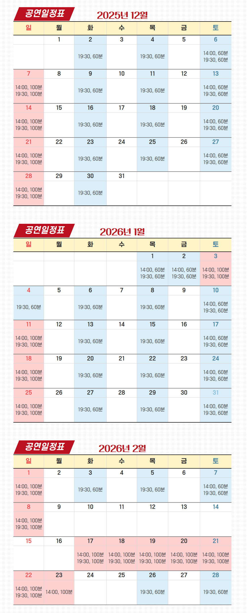 관람일 전까지 약 QR코드를 보내드리며, 별도의 미팅 없이 개별 공연장 입장하시면 됩니다.