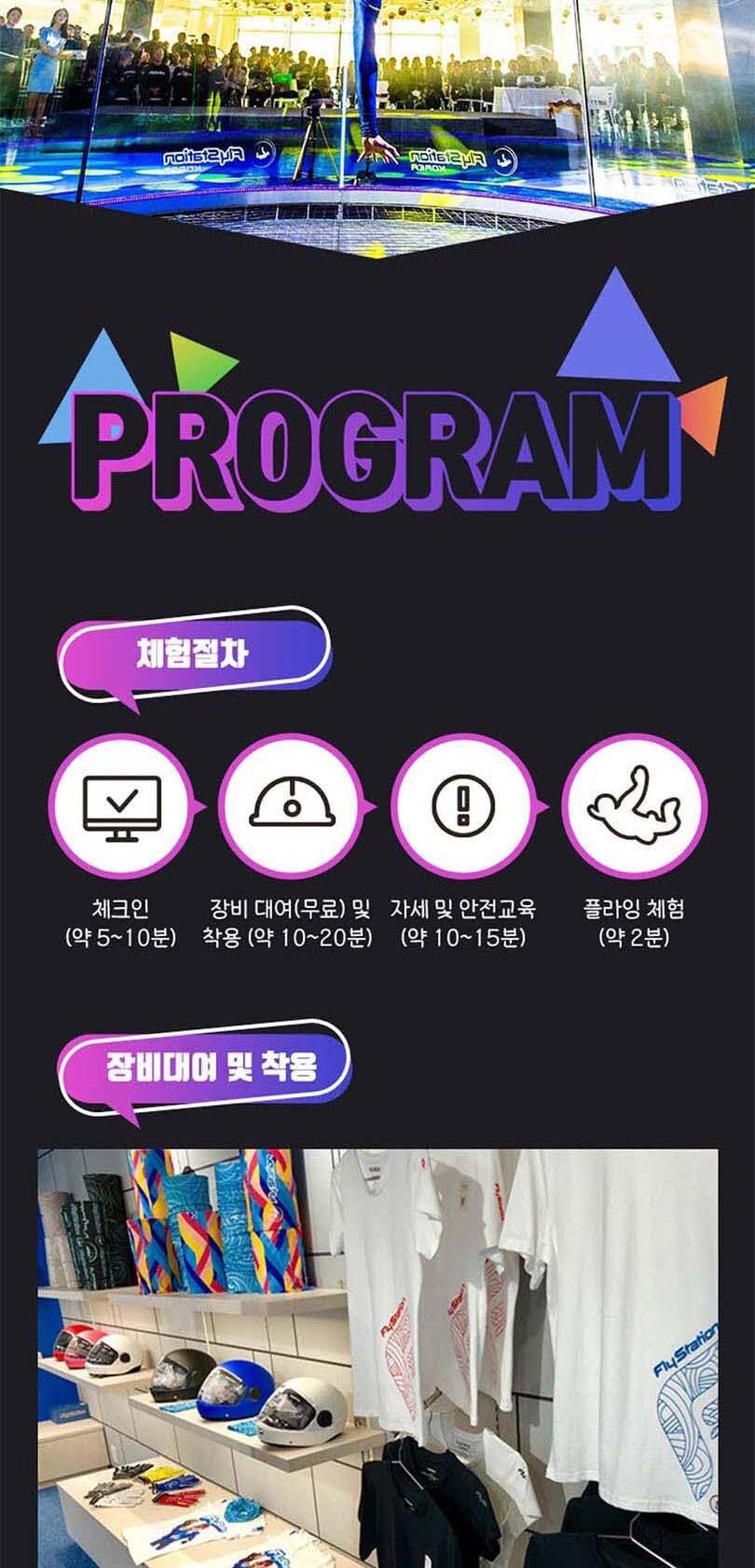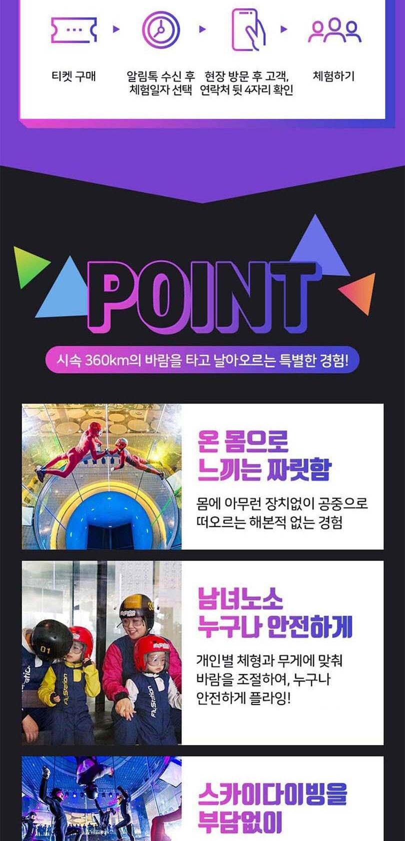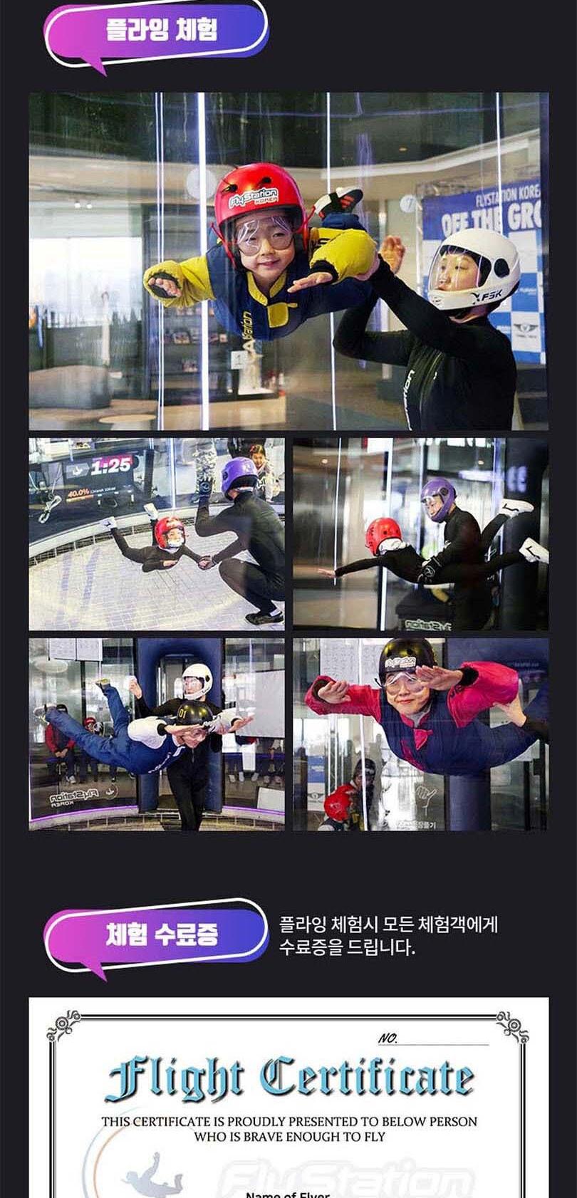 남녀노소 누구나 안전하게 즐길 수 있는 액티비티! 개인별 체형과 무게에 맞춰 바람을 조절하여, 실내 스카이다이빙을 체험할 수 있어요. 특히, 저렴한 비용으로 스카이다이빙을 즐길 수 있다는 점이 플라이스테이션만의 장점이에요. 사랑하는 사람과 함께 용인 플라이스테이션에서 신나는 추억을 쌓아보세요.