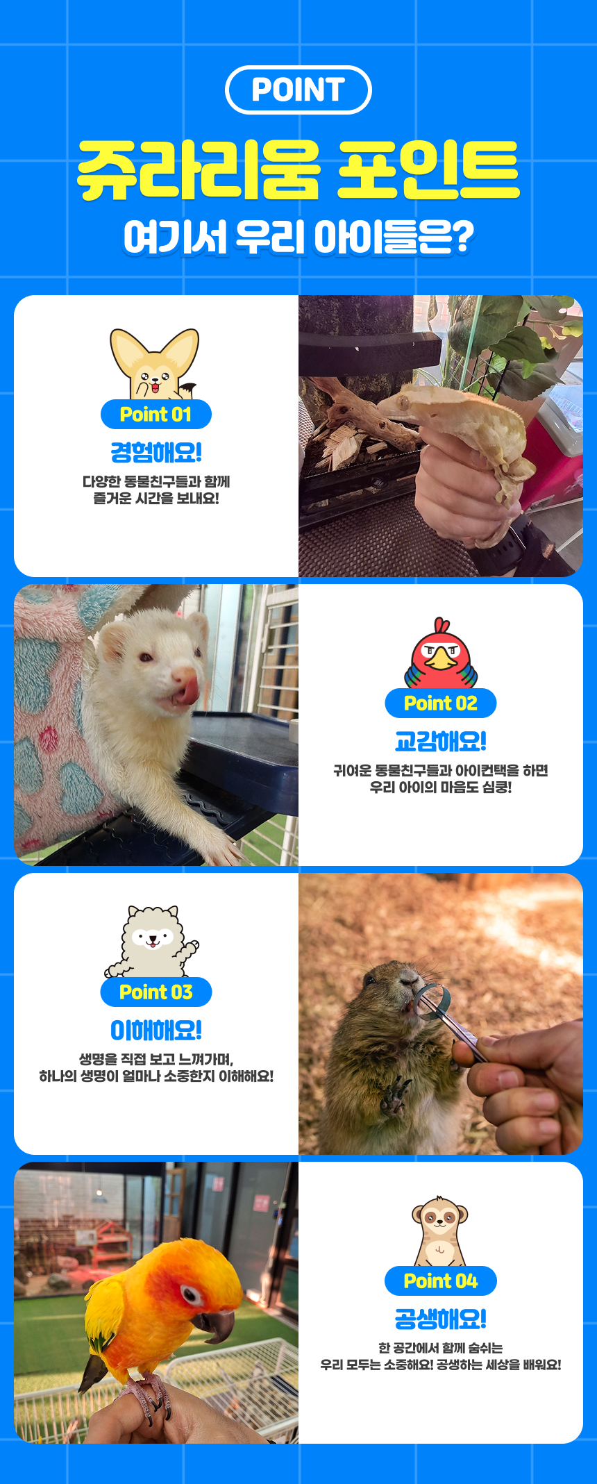 즐거움과 배움이 함께하는 쥬라리움에서, 오래 기억에 남을 따뜻한 하루를 만들어보세요. 🐢🐍🐰✨