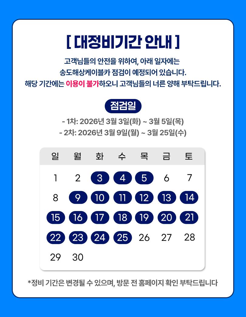 케이블카 운행은 기상 상황에 따라 유동적이니 홈페이지 운영시간 참고 바랍니다.