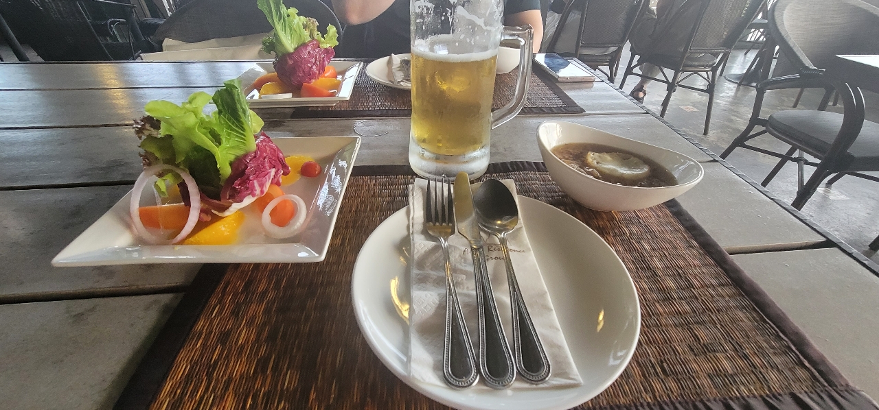 에피타이저 : 샐러드 + 양파수프 + 새우 스파게티