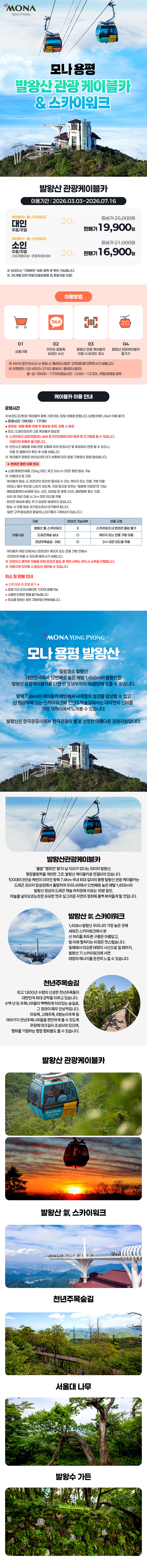 ※ 안전사고 예방을 위해 현장 상황에 따라 운영시간 및 휴장일이 변경될 수 있으니, 이용 전 반드시 용평리조트 홈페이지를 확인해주세요.