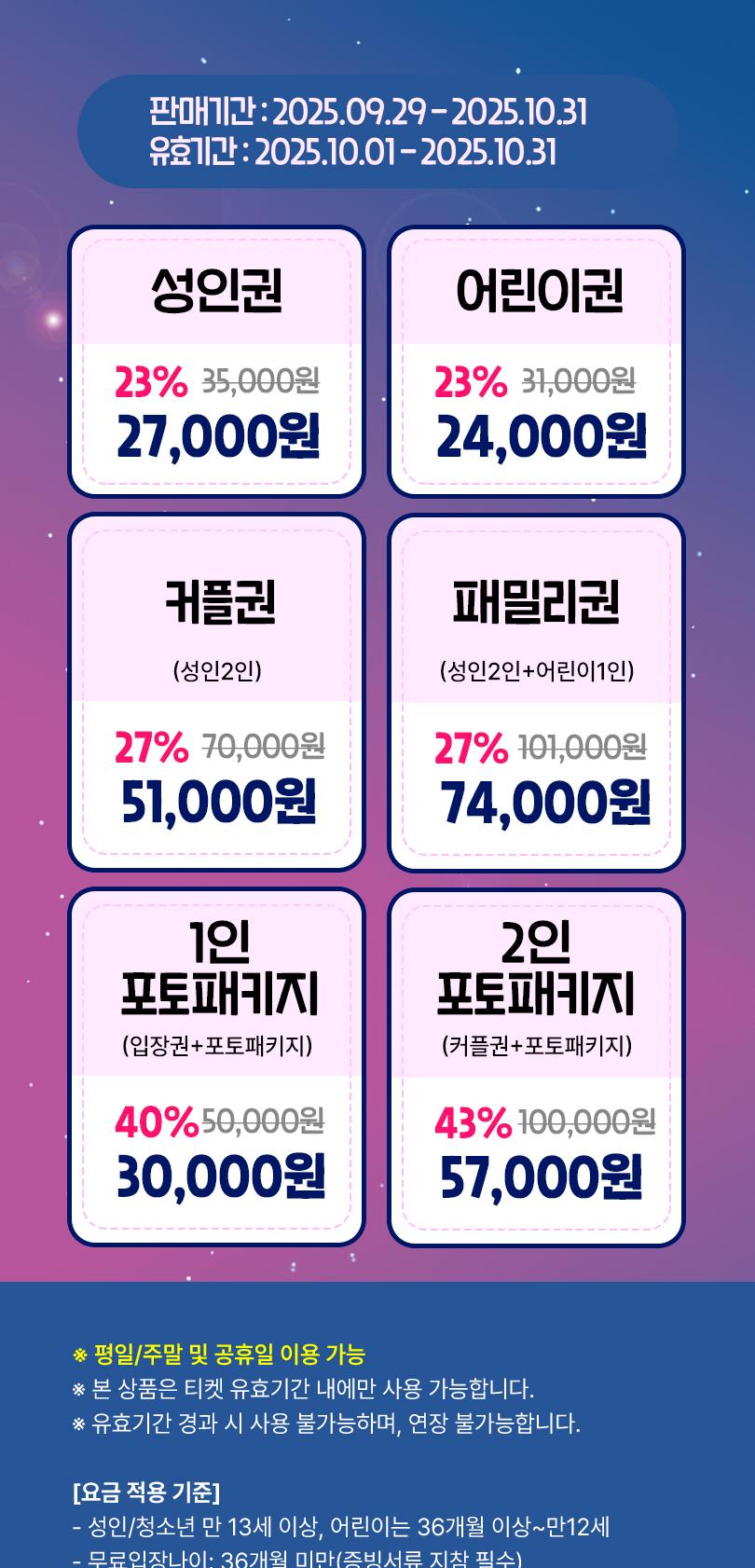 매표마감 : 마감 1시간 전까지 발권 및 입장 가능합니다.