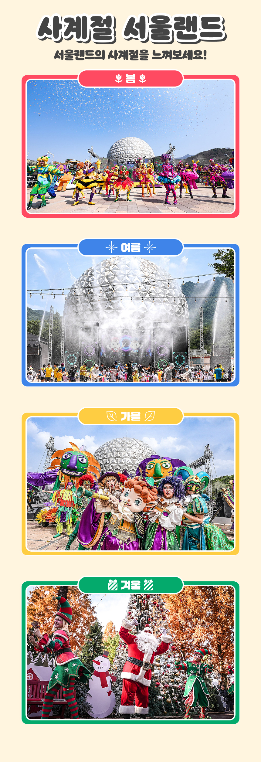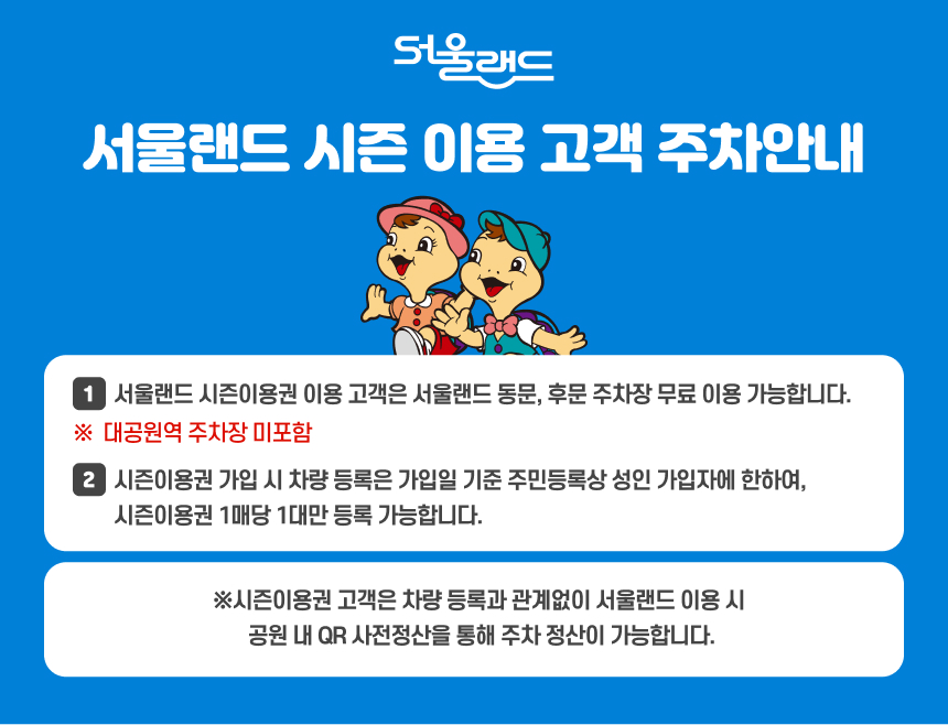 기간별 운영시간이 상이하오니 서울랜드 홈페이지를 반드시 참고 부탁드립니다.