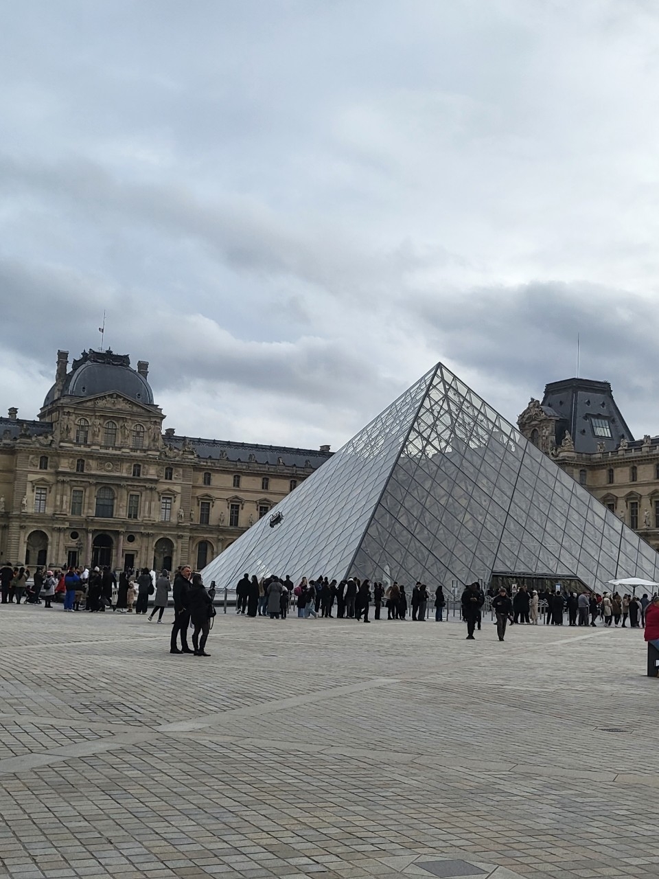 루브르 박물관 유리 피라미드 앞 루이 14세 청동 기마상 아래 Cour Napoléon et pyramide du Louvre