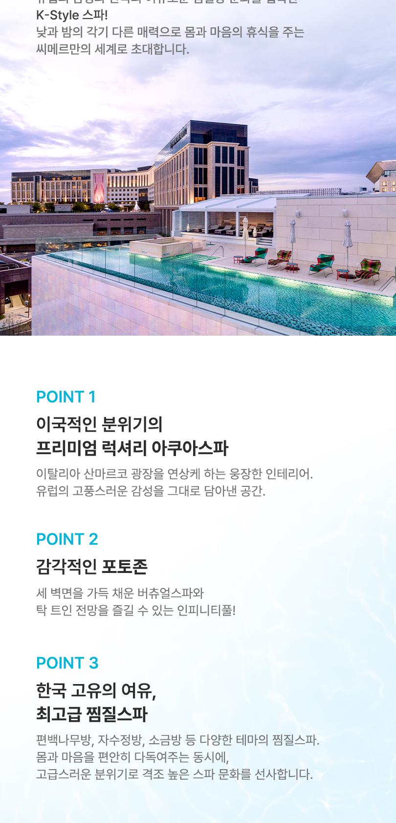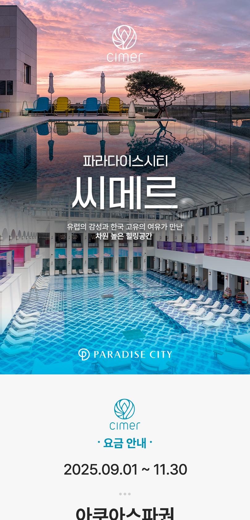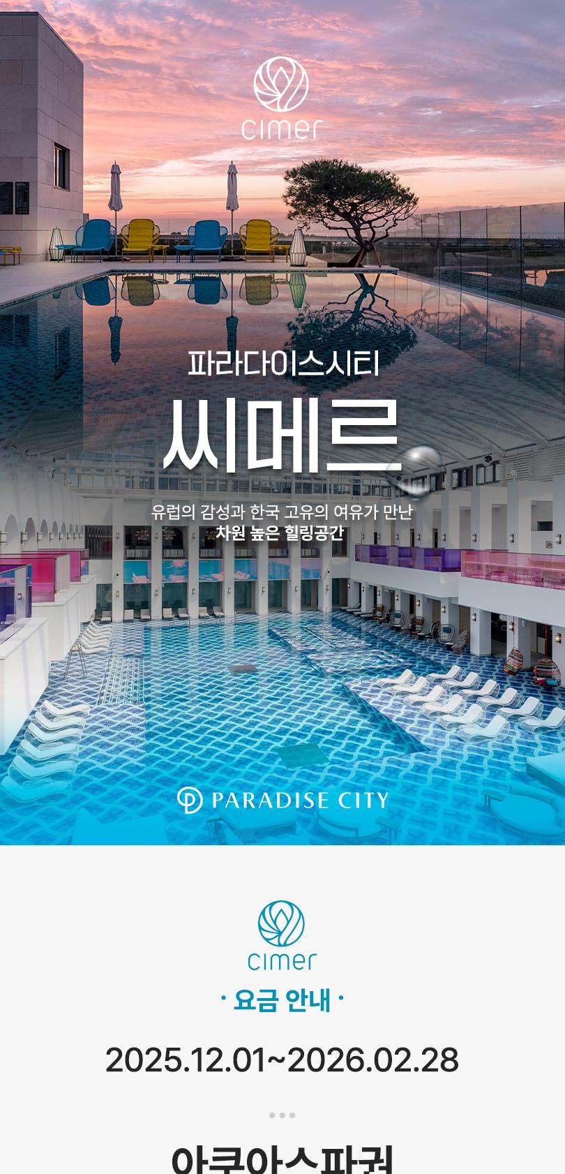 힐링과 짜릿함을 모두 느낄 수 있는 신개념 스파, 파라다이스시티 씨메르를 경험해 보세요.