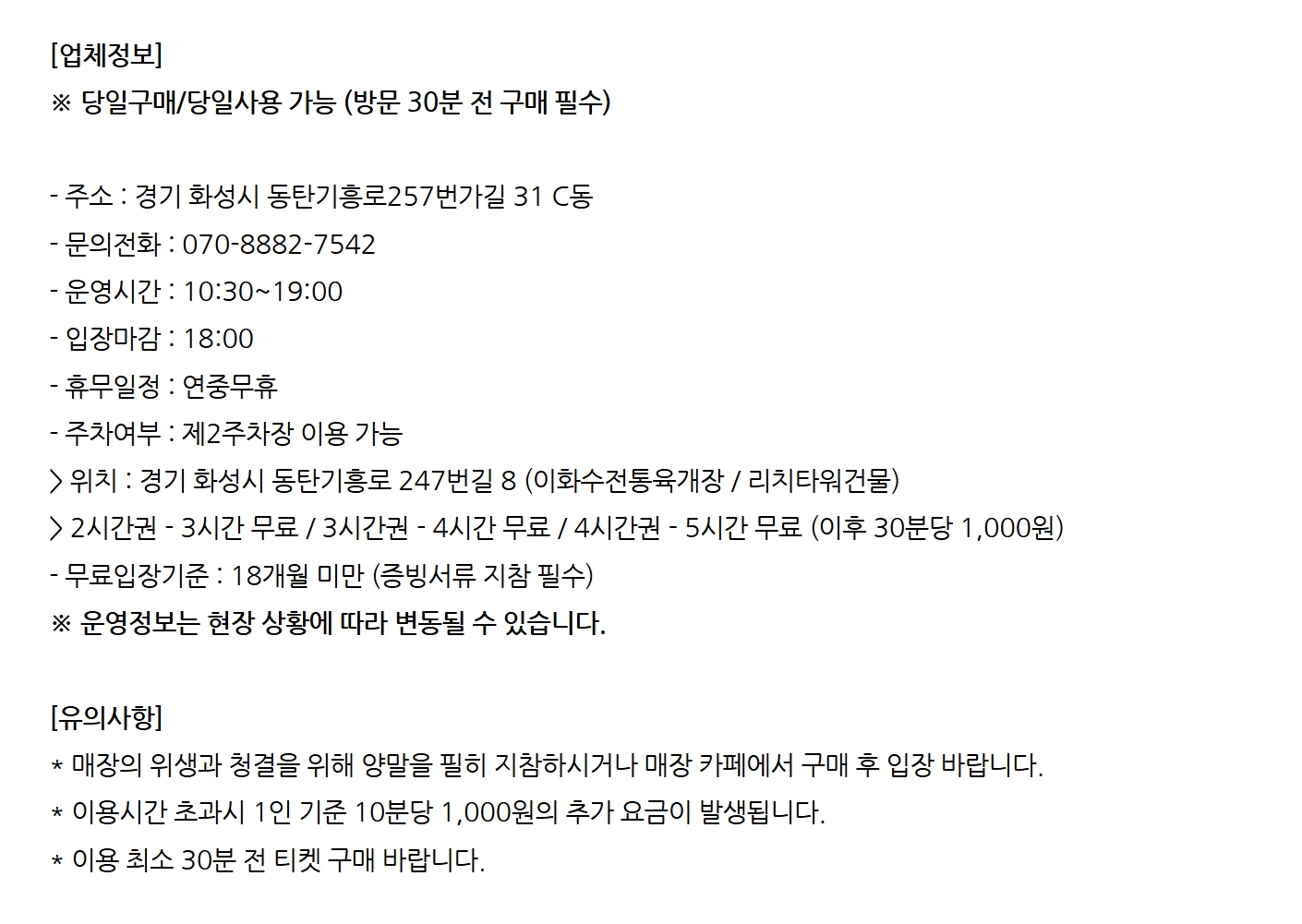 ※ 운영정보는 현장 상황에 띠라 변동될 수 있습니다.
