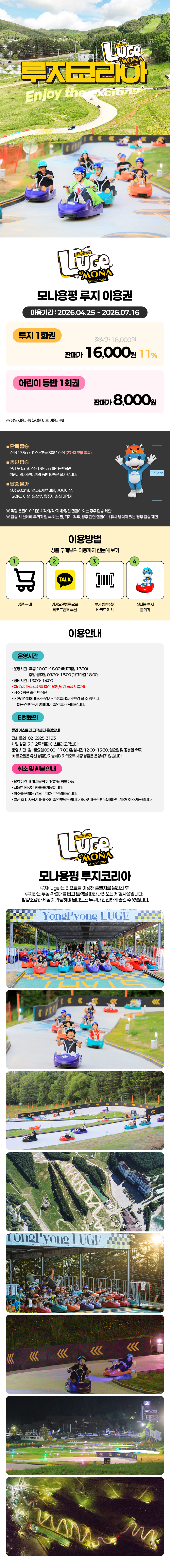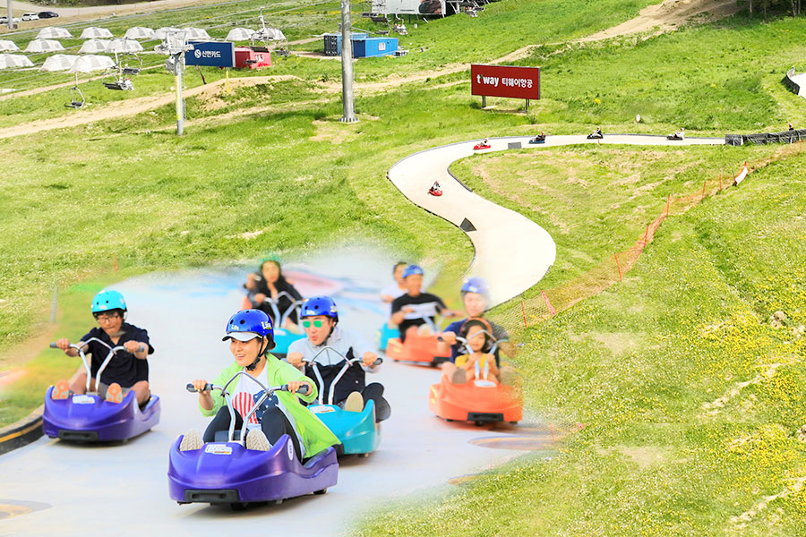 고도가 높아 하늘아래 첫 동네라고 불리는 대관령의 용평리조트에서 시원하게 바람을 가르며 루지를 즐겨보세요.