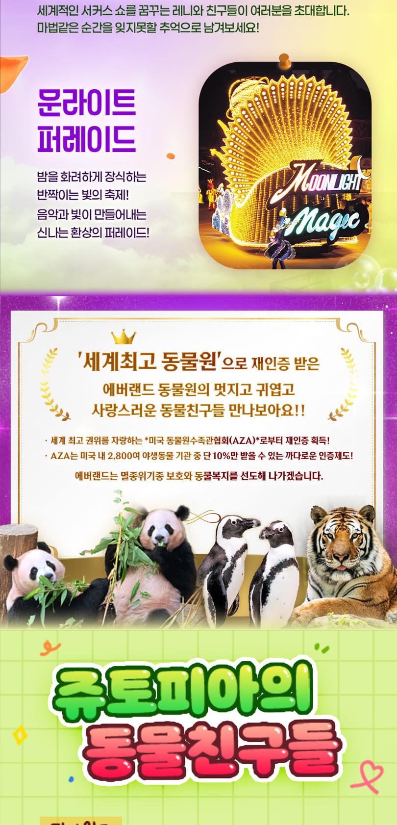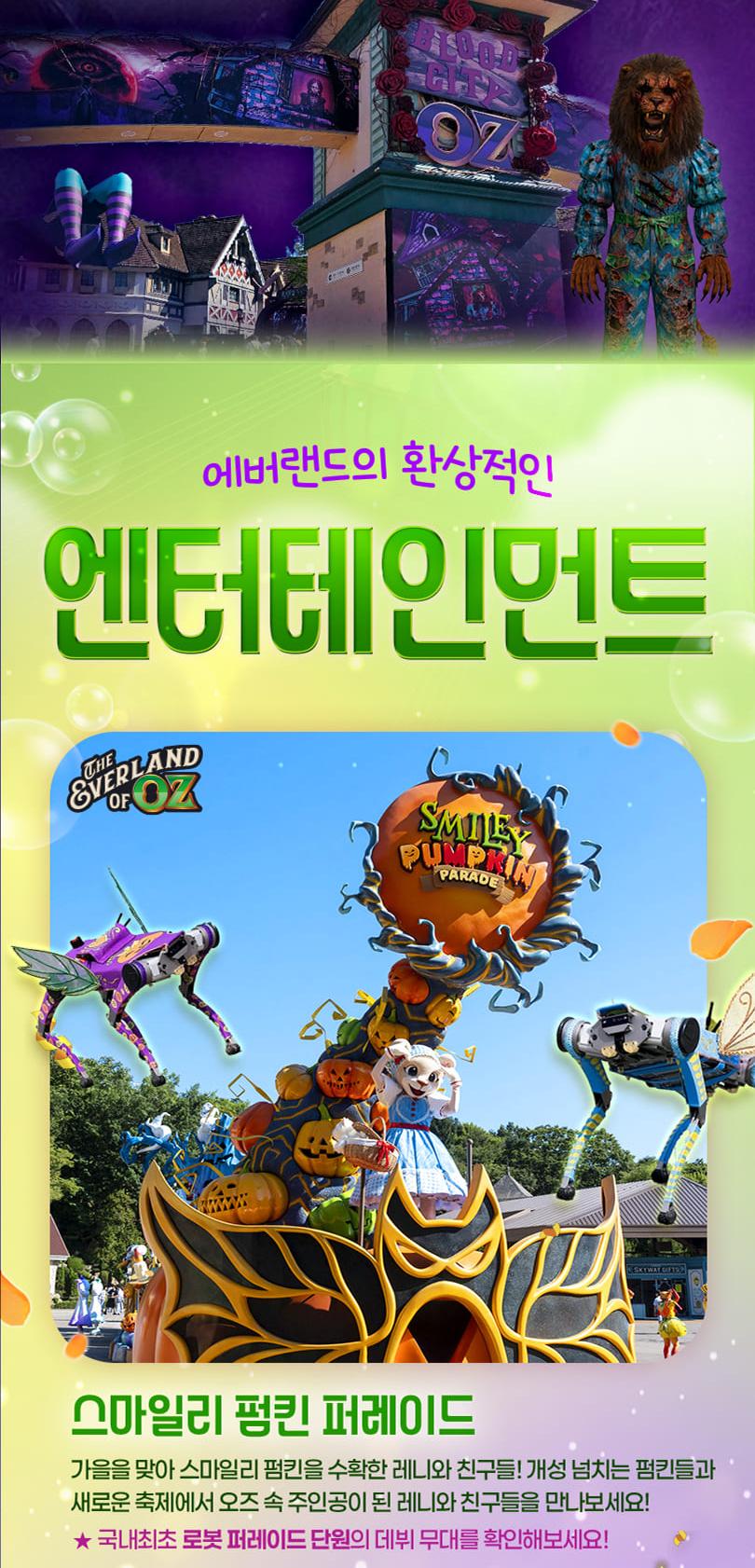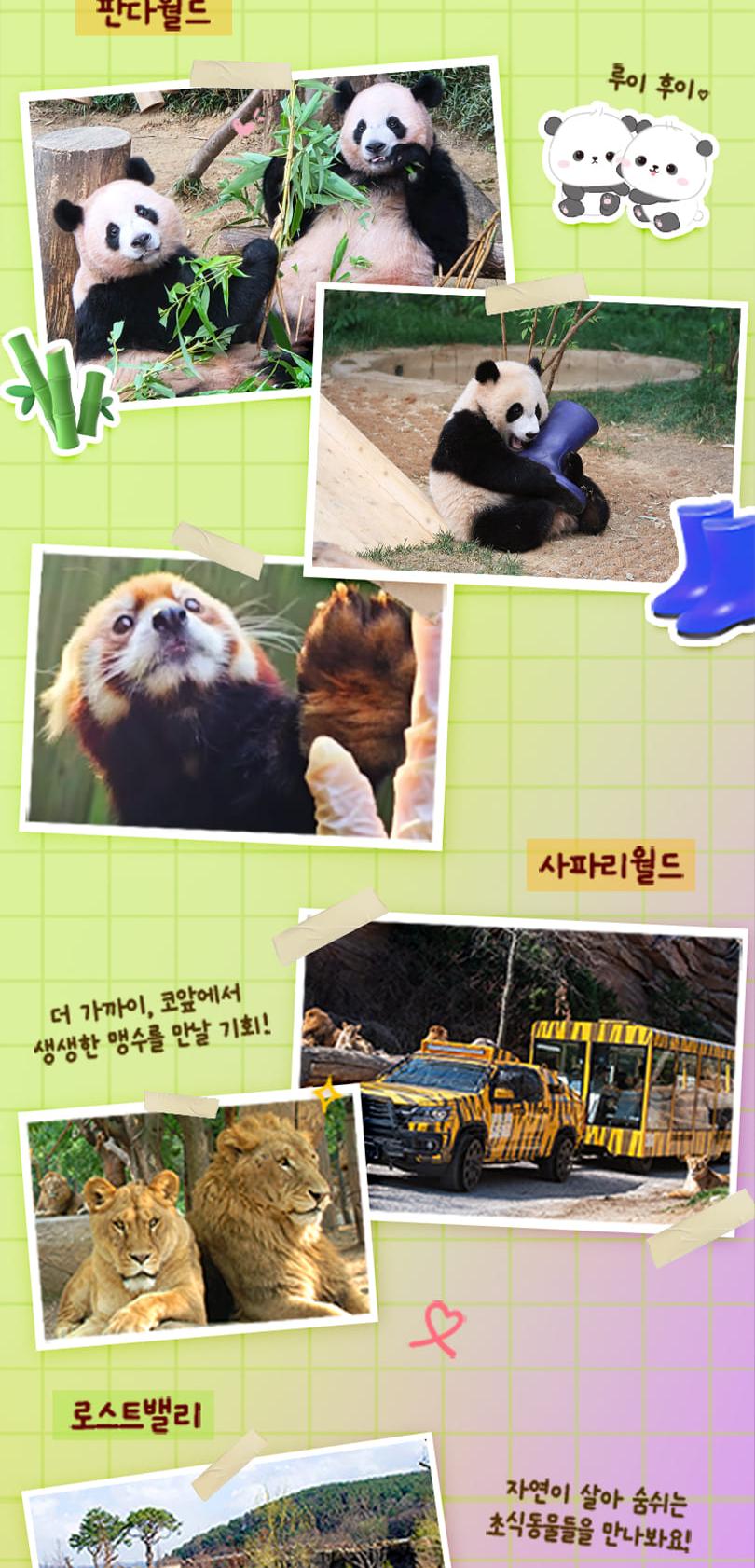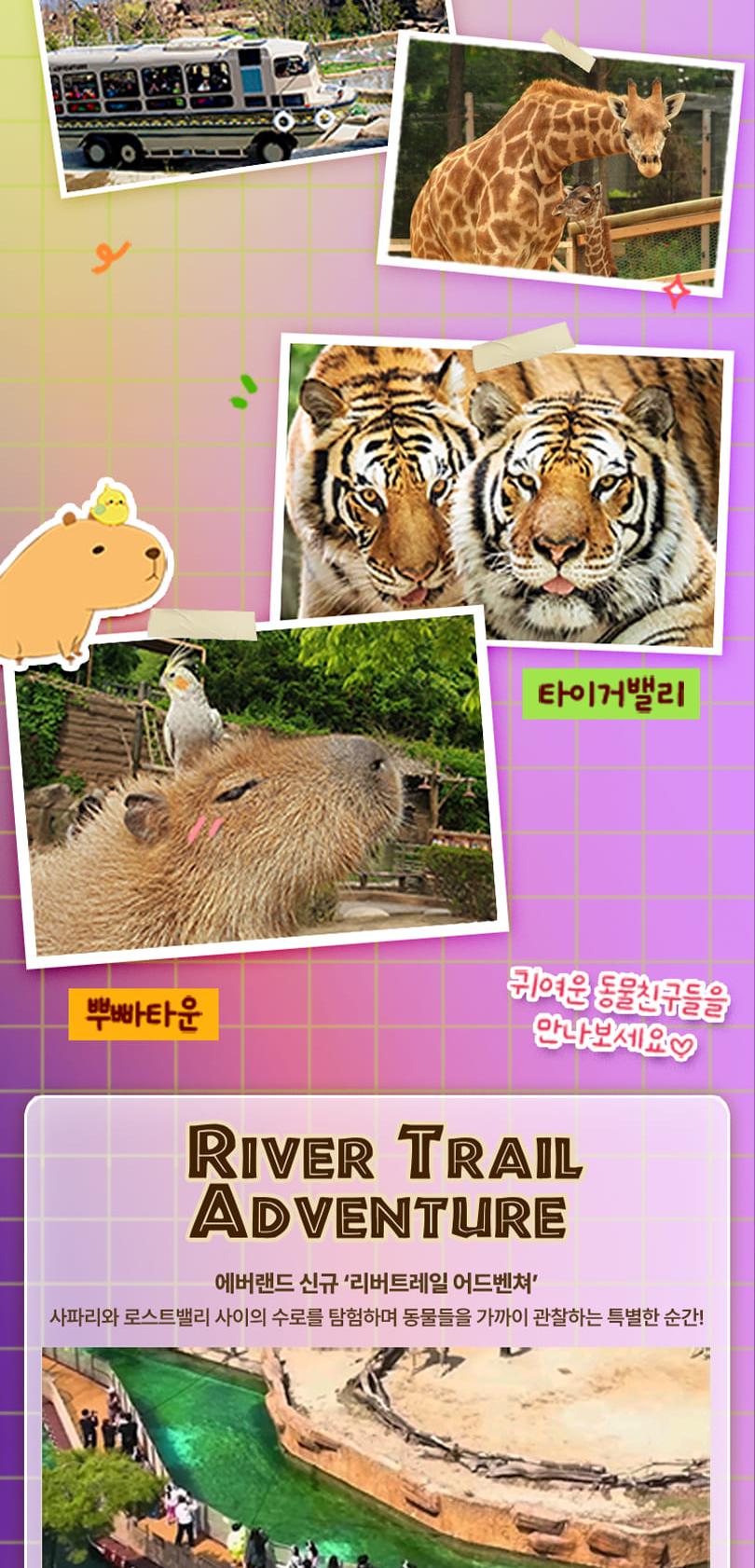 소중한 사람들과 함께 설렘 가득 에버랜드에서 짜릿한 어트랙션은 물론, 시즌마다 바뀌는 다양한 이벤트들까지 모두 즐겨보세요.