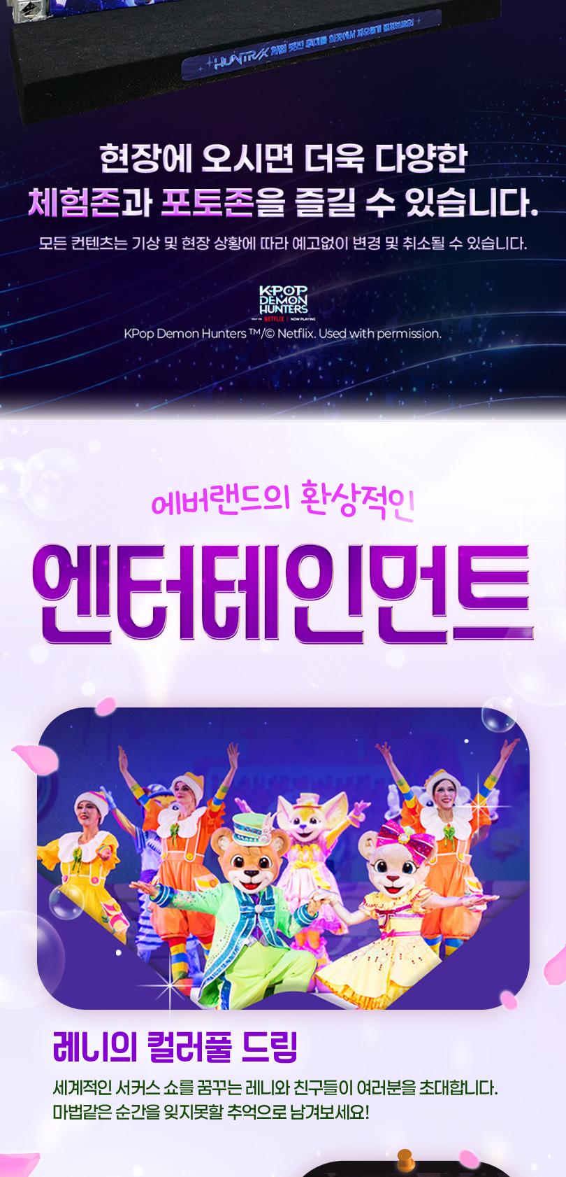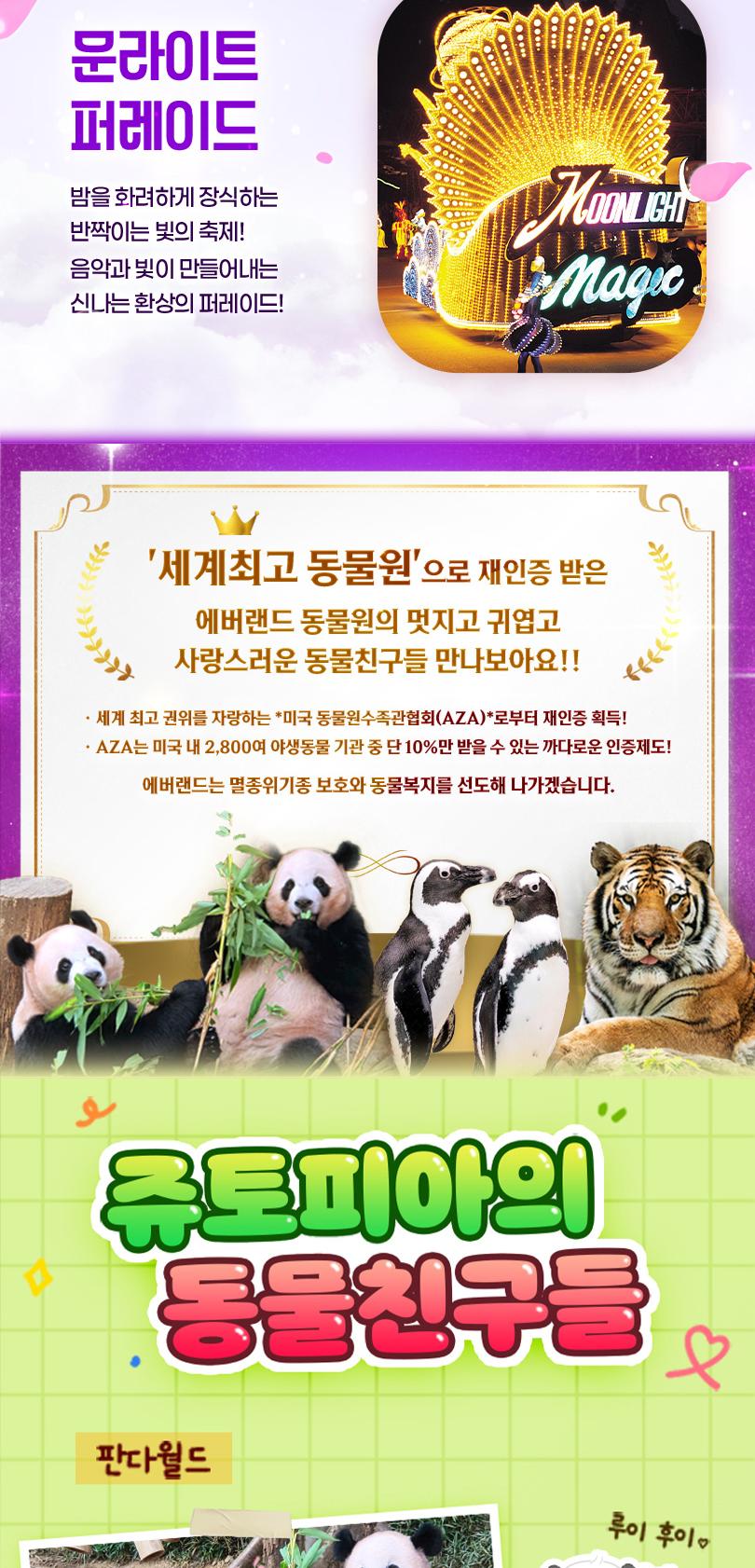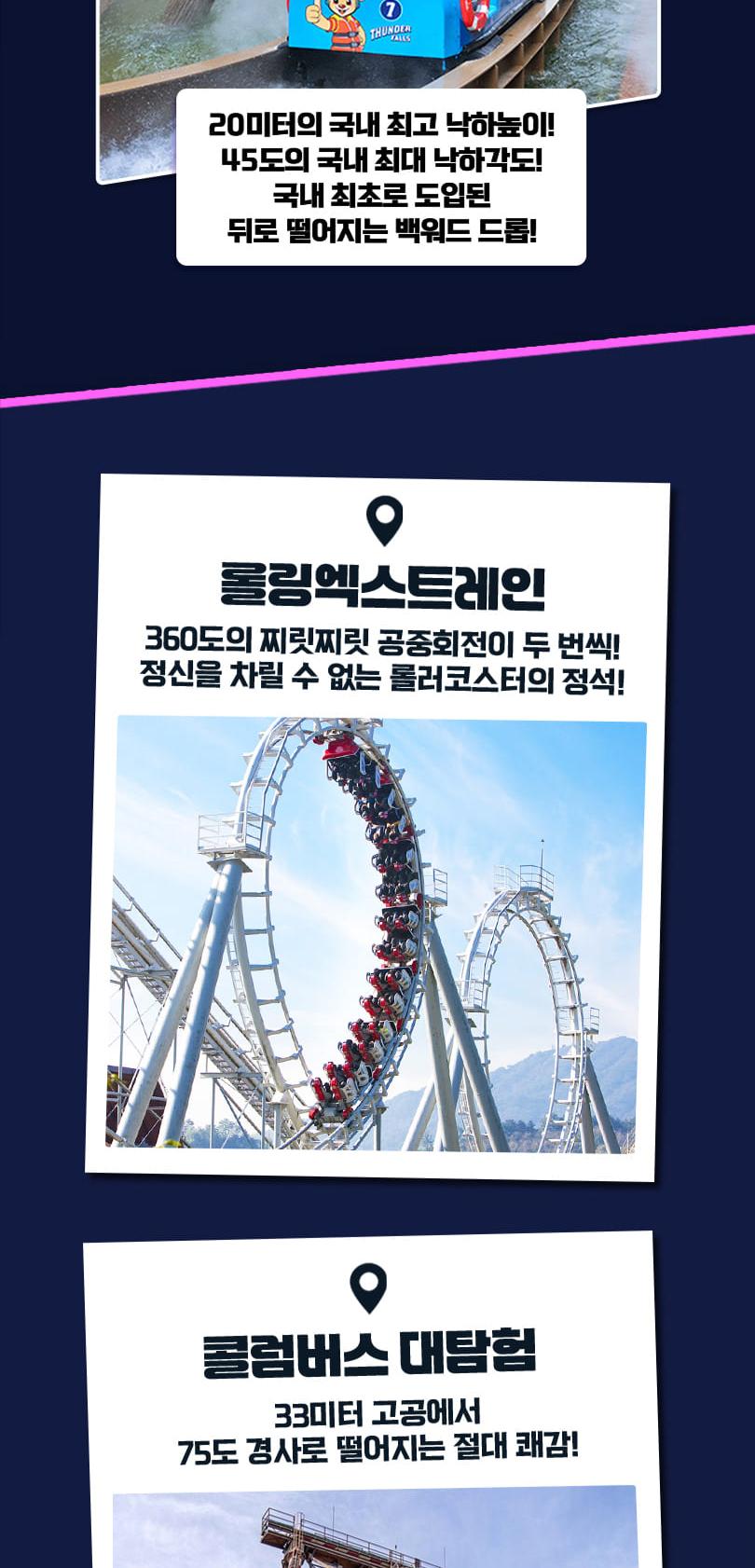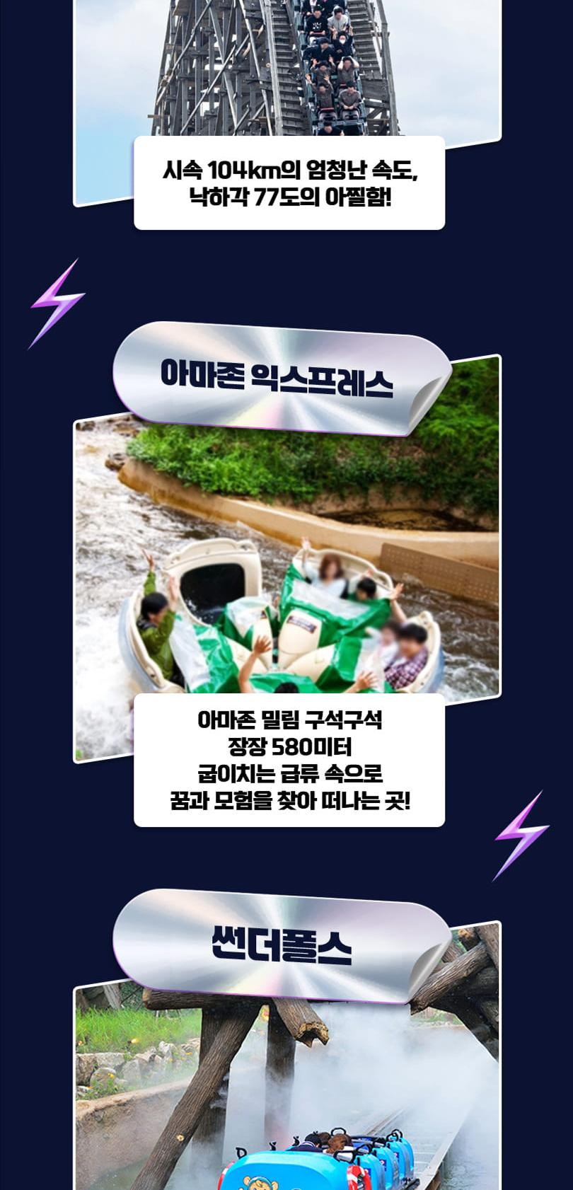 소중한 사람들과 함께 설렘 가득 에버랜드에서 짜릿한 어트랙션은 물론, 시즌마다 바뀌는 다양한 이벤트들까지 모두 즐겨보세요.