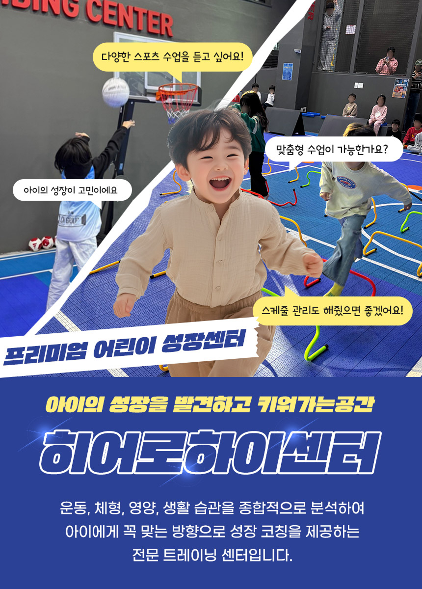 한국어 제공아이의 성장을 놀이로 완성하는 공간, 히어로 하이센터 김해점이에요 🦸♂️✨