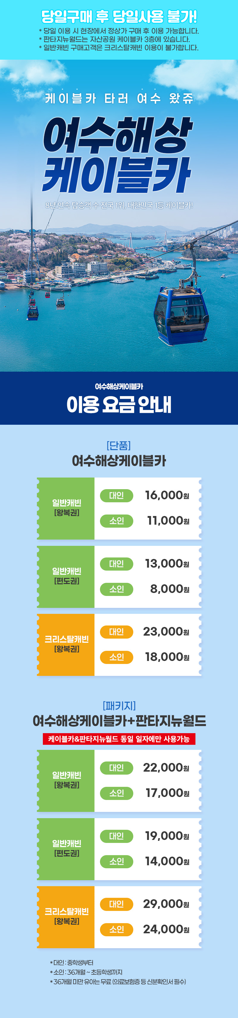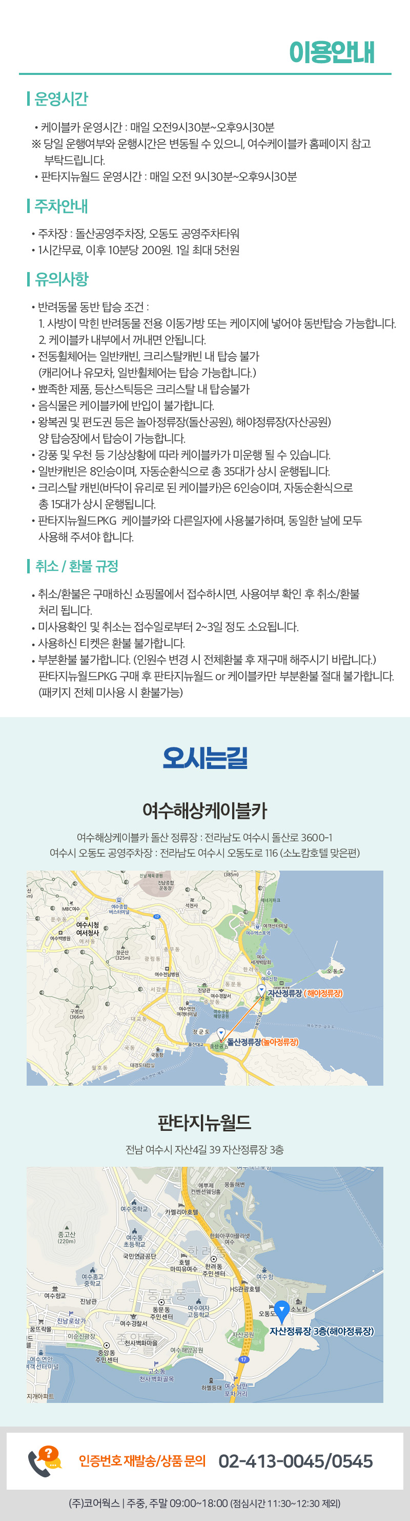 ※ 당일 운행여부와 운행시간은 변동될 수 있으니, 방문전 여수 케이블카 공식 홈페이지를 참고 해주세요.