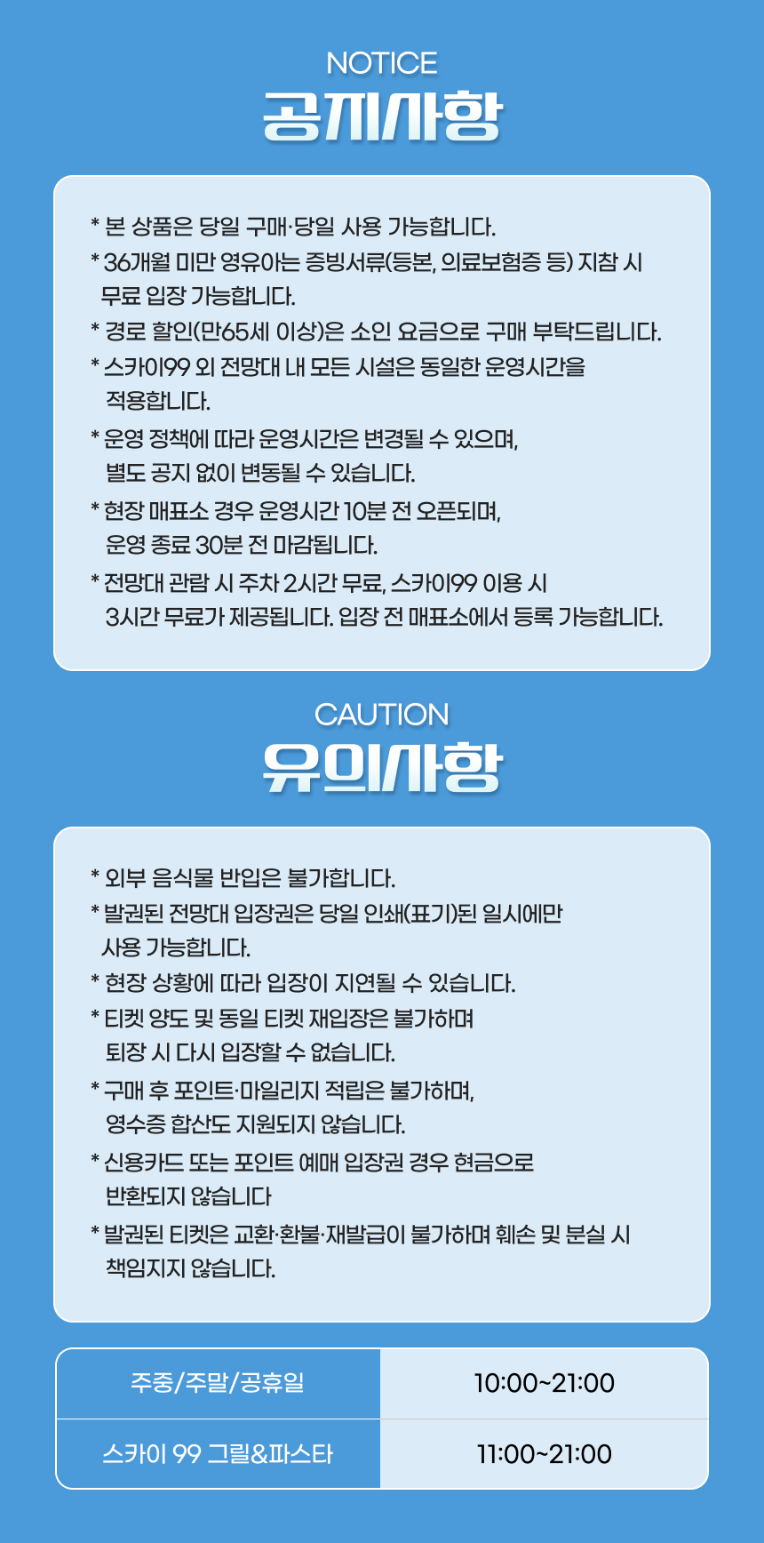 매일 : 오전 10:00 ~ 오후 21:00 (입장마감 오후 20:30)