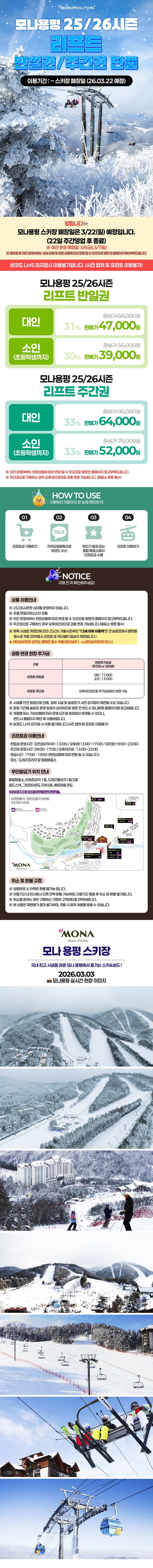※ 운영 기간별 슬로프 운영 일정이 상이하므로 방문 전 반드시 용평리조트 홈페이지를 참고바랍니다.
