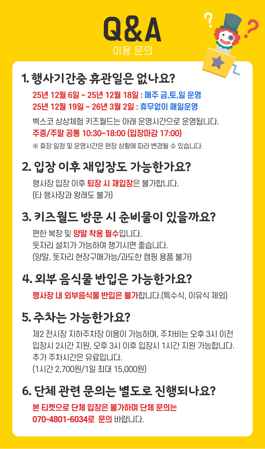※ 휴무일&운영일정은 현장상황에 따라 변동될 수 있으며 컨텐츠 참조 바랍니다.