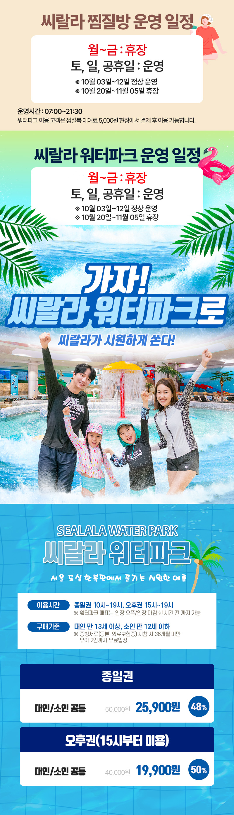 *워터파크 매표는 입장 오픈/입장 마감 한 시간 전 까지만 가능합니다.