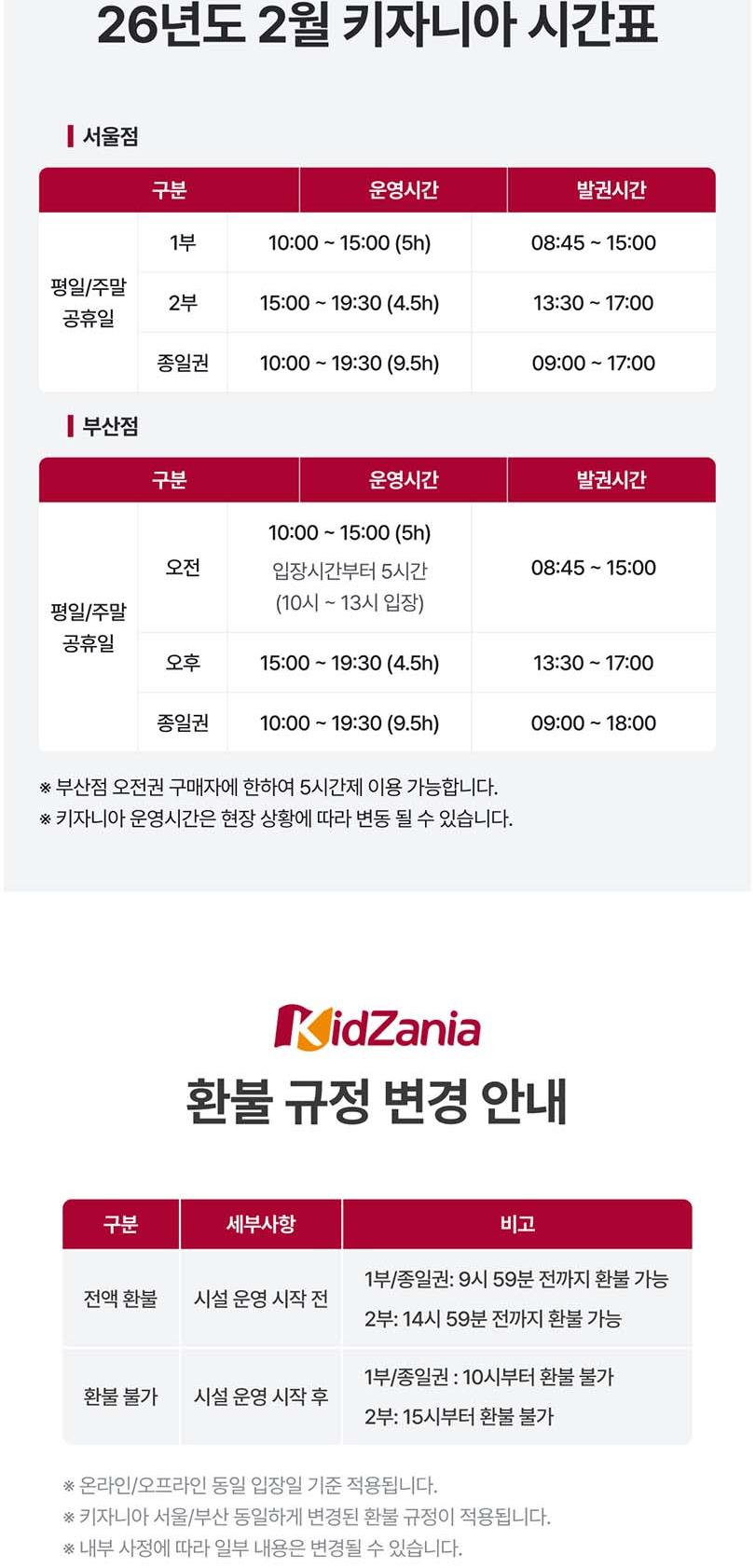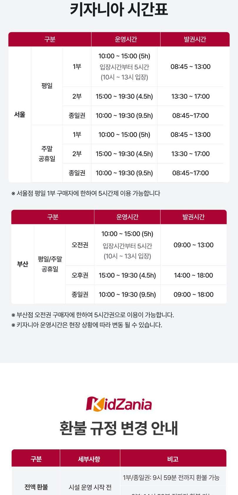 * 운영시간은 현장상황에 따라 변동 될 수 있습니다. 이용전 홈페이지 확인 바랍니다.