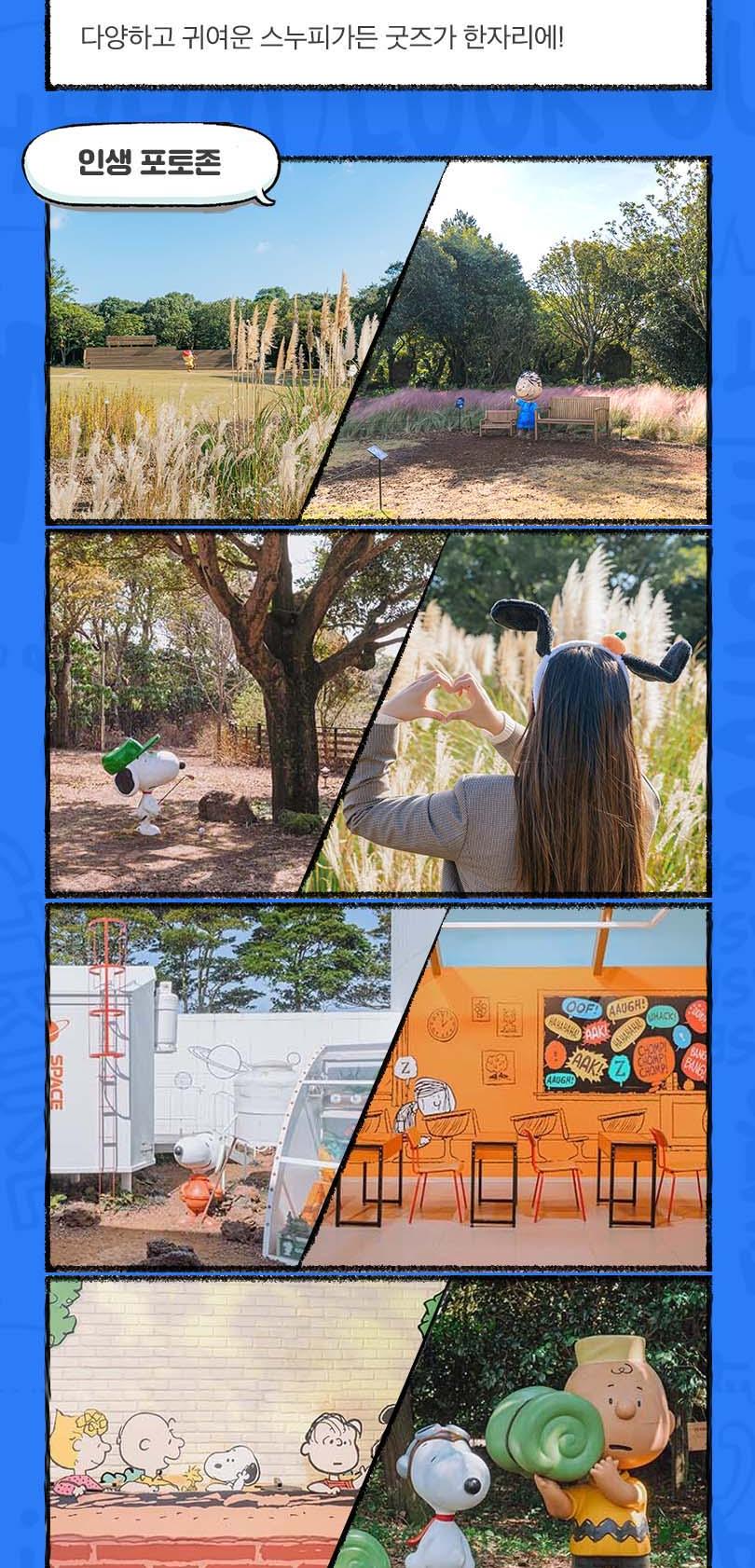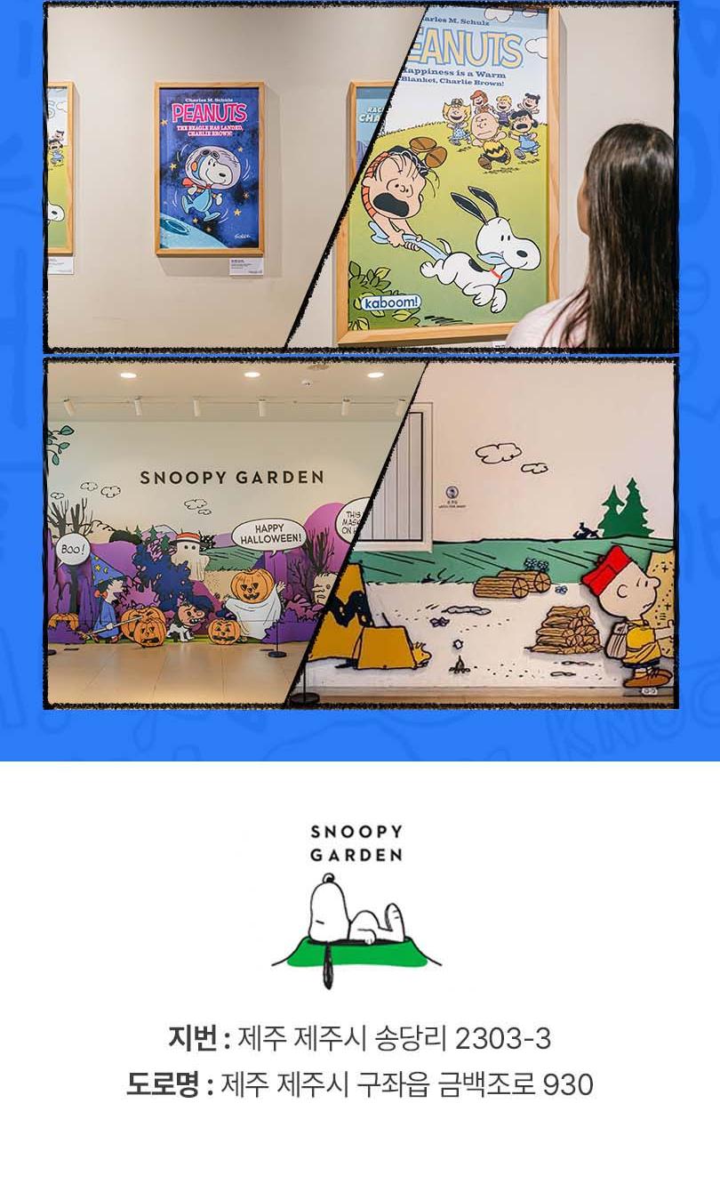 제주의 맑은 자연은 순수한 마음을 가진 피너츠의 캐릭터와 어우러져 방문하는 사람들에게 힐링을 전해요. 실내외, 피너츠 테마로 꾸며진 공간에서 귀여운 캐릭터들과 함께 사진을 남겨 보세요. 포토존을 찾아 산책하는 동안 스누피가든이 주는 평온함을 느끼실 수 있을 거예요.