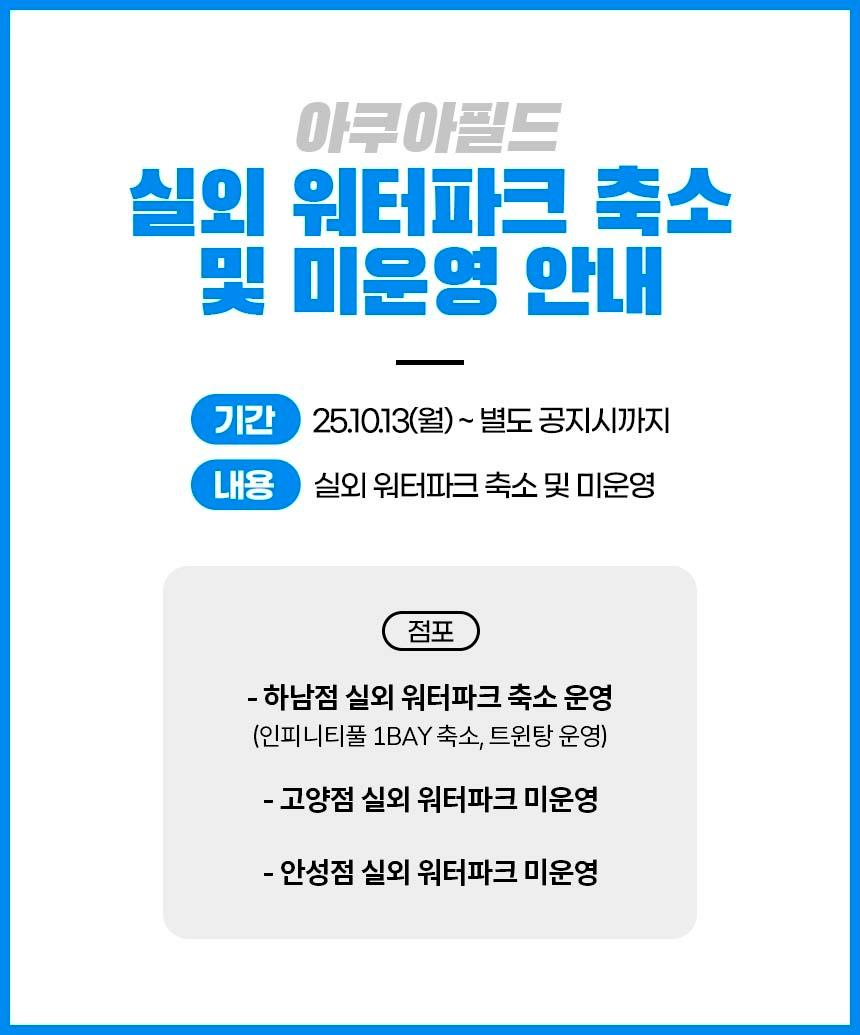 하남 아쿠아필드는 청량한 물소리와 하늘 빛 자연을 한 눈에 품은 감각 있는 사람들의 오감만족 힐링 공간이에요. 특히 워터파크는 사계절 즐길 수 있는 곳으로 큰 사랑을 받고 있어요. 공간마다 색다른 휴식이 기다리는 아쿠아필드에서 삶의 진짜 멋과 여유를 느껴보세요.