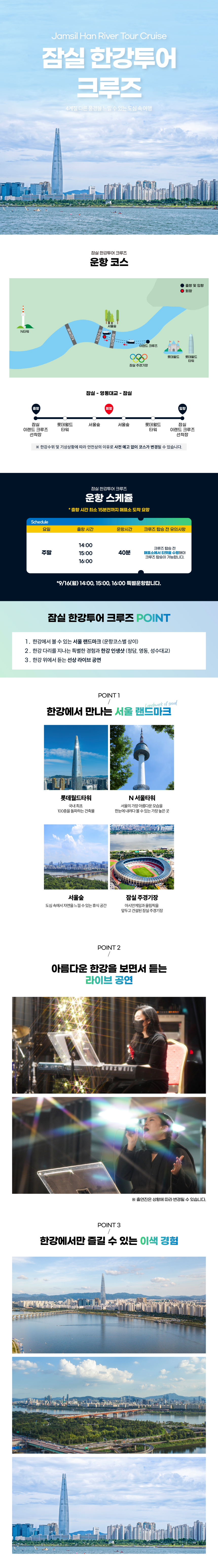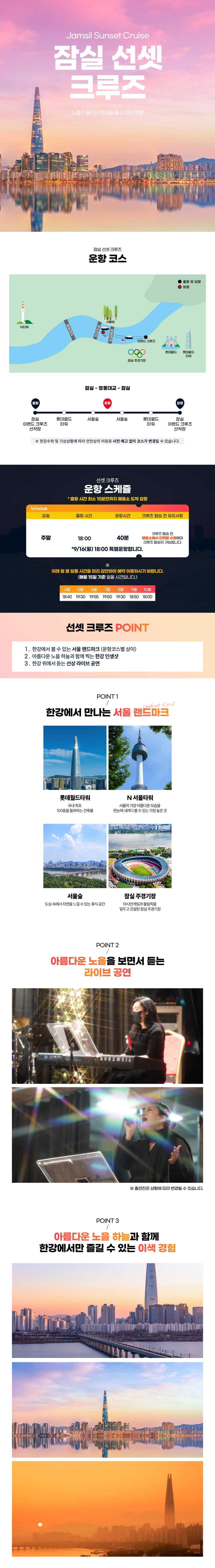 서울 도심 속에서 만나는 가장 로맨틱한 순간, 한강 위를 유유히 흐르는 이랜드 크루즈에서 일상의 풍경을 특별한 여행으로 바꿔보세요. 낮에는 햇살에 반짝이는 윤슬과 함께 여유로운 한강의 풍경을 감상하고, 해 질 녘에는 도심을 물들이는 선셋이 만들어내는 감성적인 순간을 온전히 느낄 수 있습니다. 밤이 되면 화려한 조명으로 빛나는 서울의 랜드마크를 배경으로 선상 라이브 공연이 펼쳐지며, 마치 영화 속 한 장면 같은 분위기를 완성해줍니다. 시원한 강바람과 함께하는 여유로운 시간, 사랑하는 사람과 잔을 기울이며 즐기는 한강의 밤은 그 자체로 완벽한 힐링이 됩니다. 도심 속에서 색다른 낭만을 경험할 수 있는 이랜드 크루즈는 평범한 하루를 특별한 추억으로 바꿔주는 최고의 선택입니다.