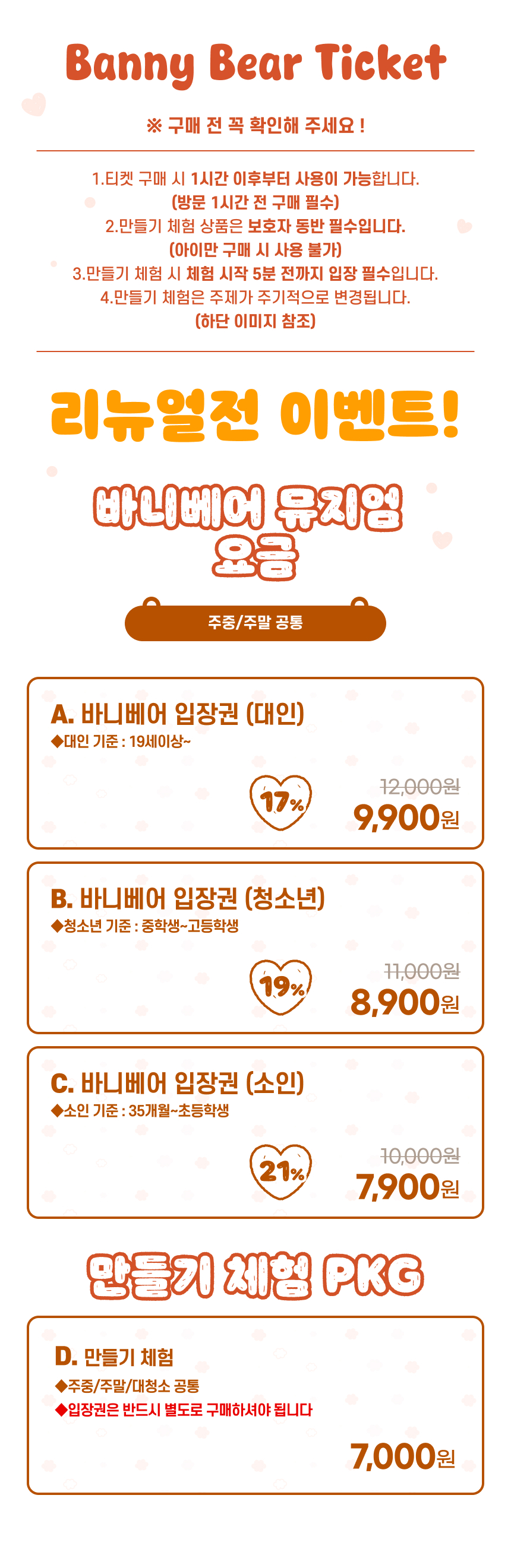 만들기 체험 오전 11:30 ~ 오후 17:00 (마지막 체험 17시)