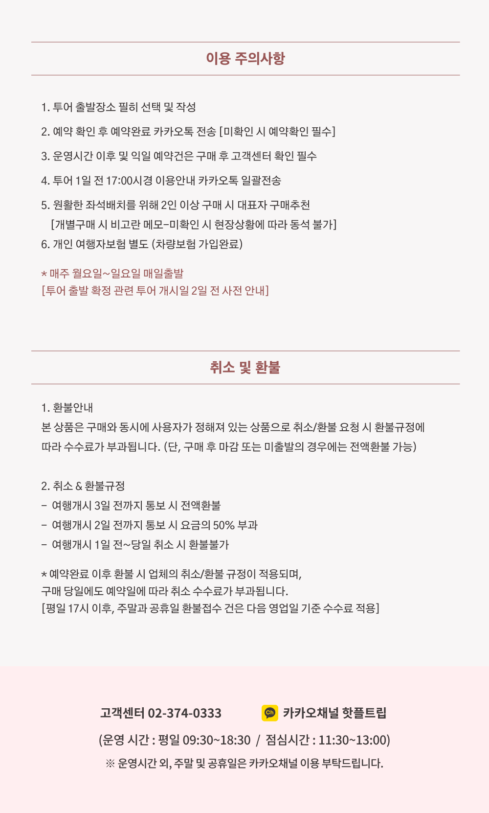 * 출발 5분 전까지 도착 부탁드립니다. 출발 시각 이후 도착 시 개별적으로 합류하여야 합니다.
