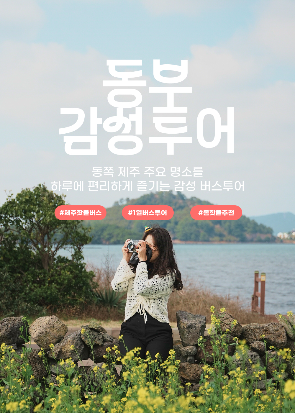 아름다운 청정자연을 가진 섬이지만 뚜벅이에게는 망설여지는 제주 여행! 차가 없어도 쉽게 만끽할 수 있는 일일 버스 투어를 소개할게요. 제주 투어 전문가가 엄선해 기획한 코스를 기사님이 운전해 주시는 버스를 타고 편안하게 방문하고, 목적지에서는 자유롭게 여행을 즐길 수 있어 패키지 투어와 자유여행의 장점을 모두 가지고 있어요.