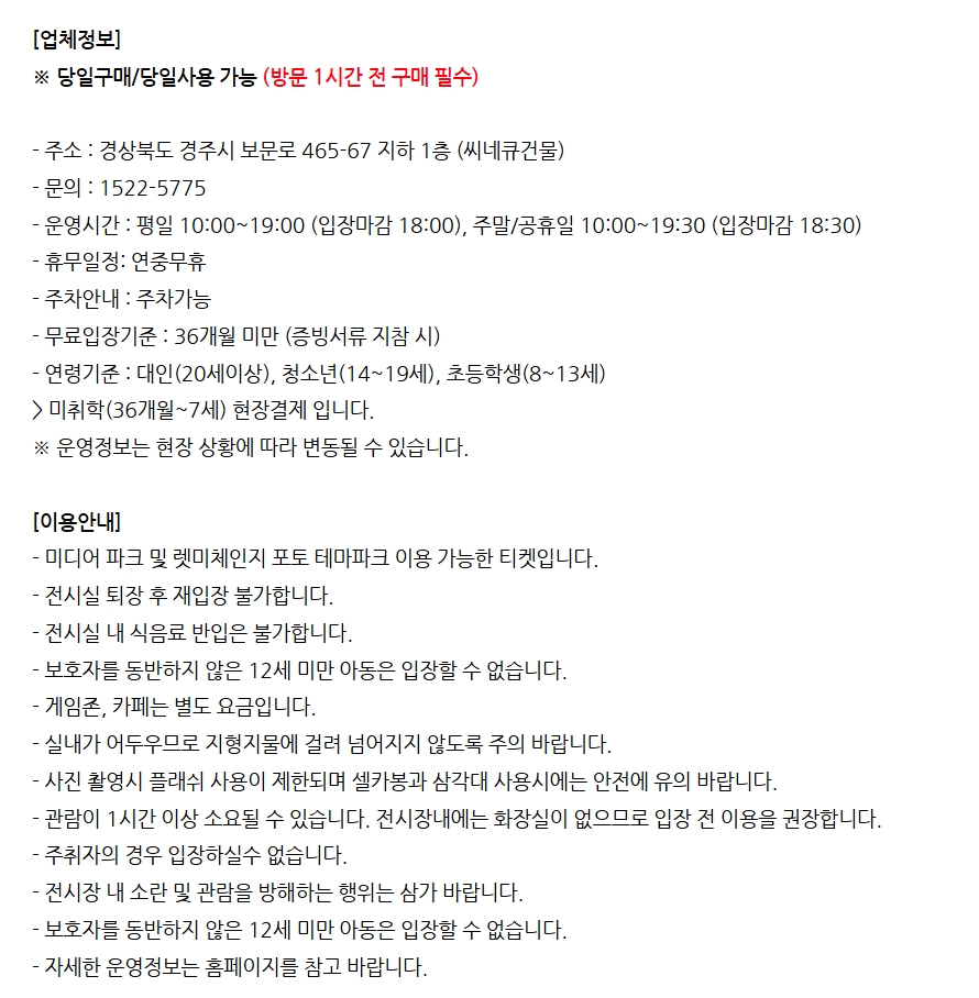 주말/공휴일 : 오전 10:00 ~ 오후 19:30 (입장마감 : 오후 18:30)