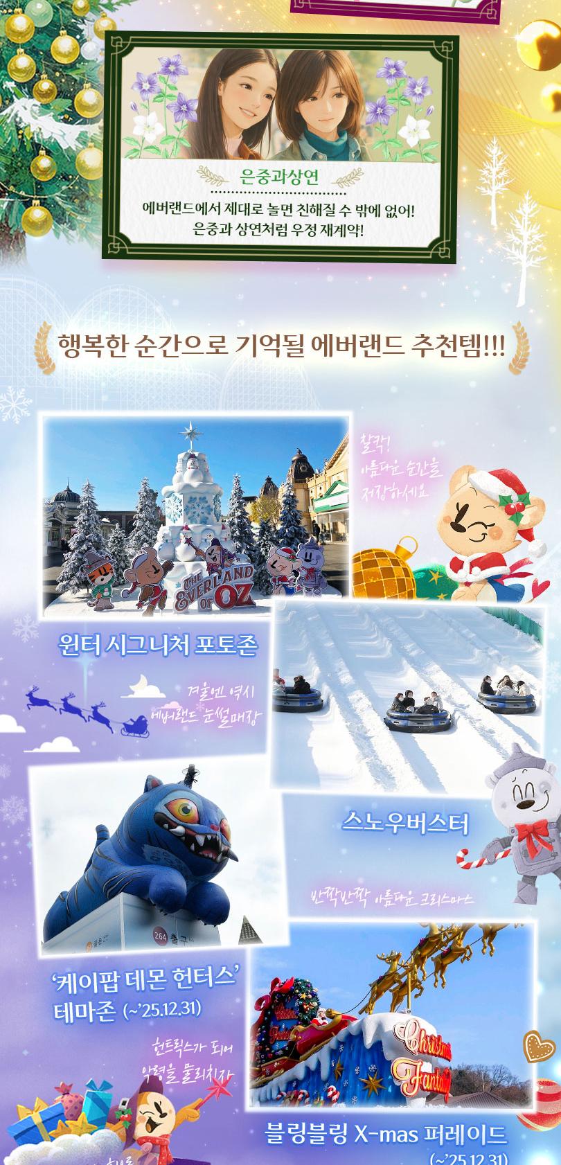 소중한 사람들과 함께 설렘 가득 에버랜드에서 짜릿한 어트랙션은 물론, 시즌마다 바뀌는 다양한 이벤트들까지 모두 즐겨보세요.