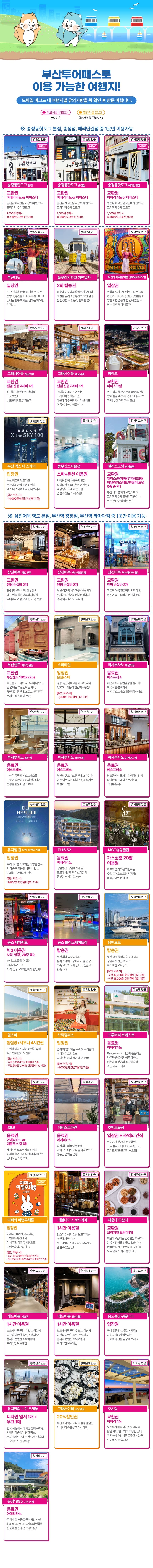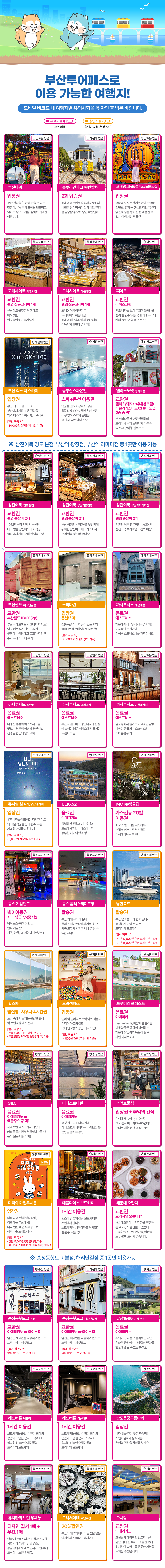 갈 곳은 많고 사야하는 입장권이 많을때! 부산 투어패스 프리패스권을 이용해보세요! 원하는 여행지나 코스에 맞춰 고를 수 있는 투어패스로 무료 입장 혜택이 정말 많아요.