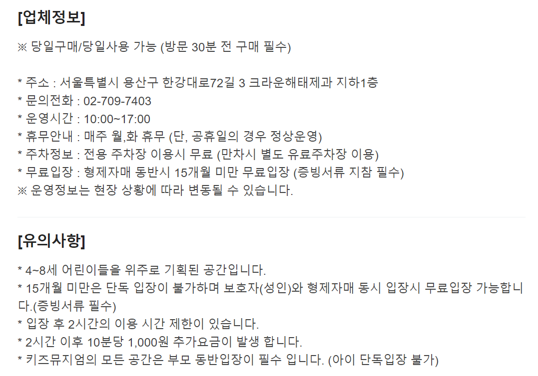 베스트규모 자체가 짧긴 한데 해태에서 애정을 가지고 만든 게 보여서 좋았어요,과자집 만들기 체험은 아기가 너무 좋아했습니다.주차도 이정도면 편한 것 같고 관리가 굉장히 잘 돼 있습니다. 식사 시설이나 식당은 없고 바로 옆 아이스크림 가게 빨라쪼에 티켓을 들고 가면 할인을 해줘요.