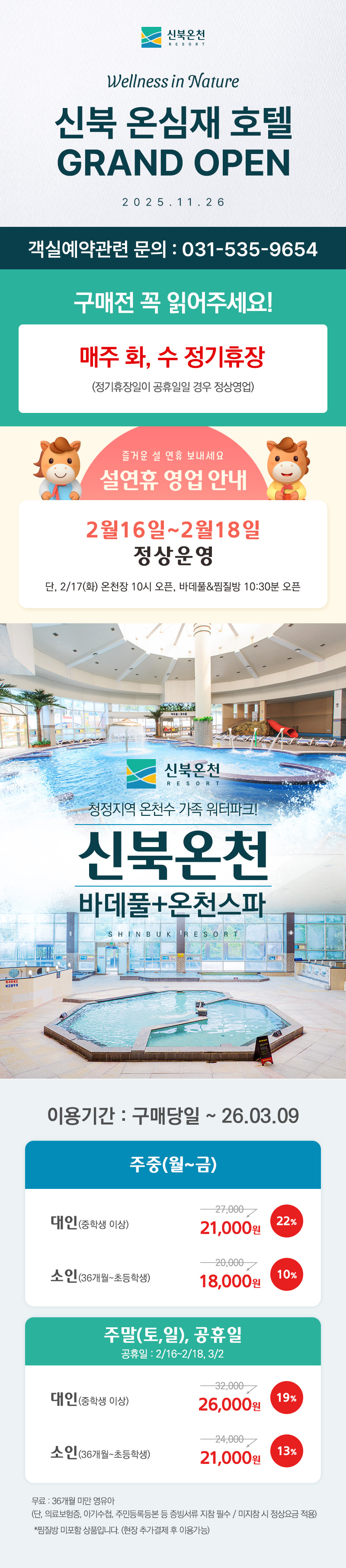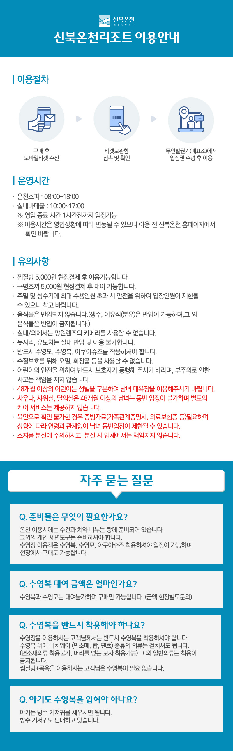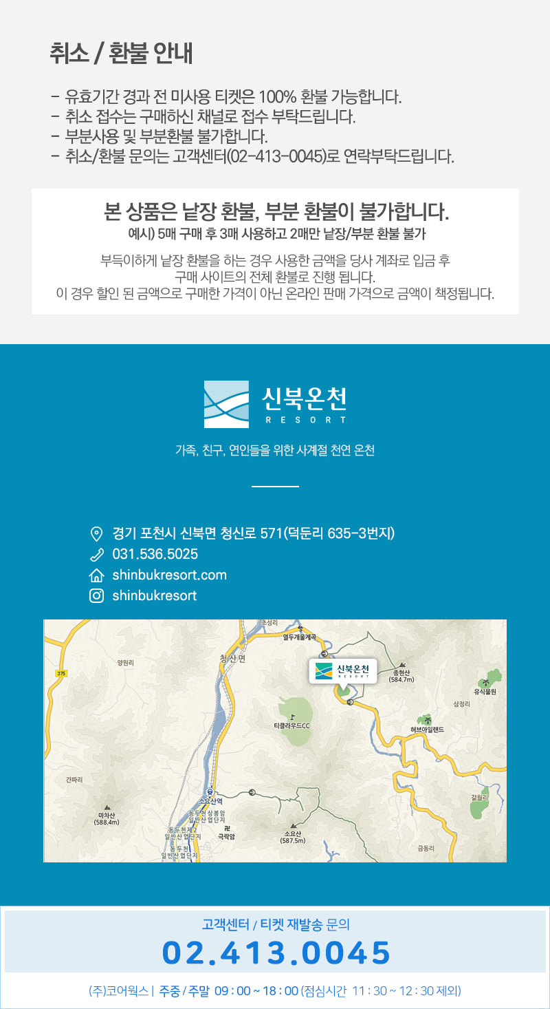 ※ 이용시간은 영업상황에 따라 변동될 수 있으니 이용 전 신북온천 홈페이지 확인 바랍니다.