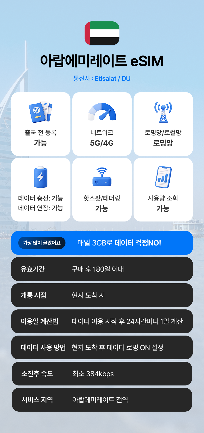 여행 중 필수로 필요한 데이터! 여행을 편안하게 시작하고 싶다면 데이터 eSIM을 추천해요. 별도의 SIM 교체 없이 스마트폰 설정만으로 이용이 가능한 상품이에요. 무거운 공유기는 더 이상 들고다니지 마세요! 더욱더 가볍고 편리하게, 그리고 저렴하게 여행을 시작해 보세요.