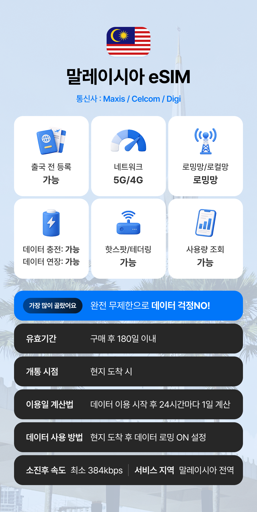 베스트말레이시아에서도 잘 터지고 바로 등록되는 편한 시스템!! 와그가 이심은 정말 편하고 가격도 저렴한거 같아요💜