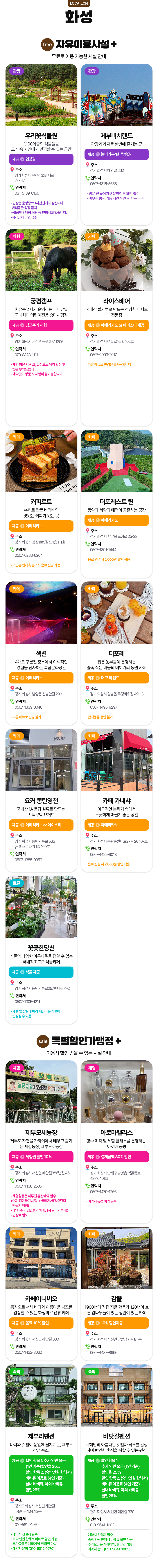 해당 투어패스는 화성의 여행지, 카페 등의 제휴처에서 무제한 혜택을 받을 수 있어 여러 곳을 방문하고 특별한 추억을 만들기에 좋아요. 가성비 넘치는 화성투어패스와 함께 똑똑한 여행을 떠나보세요.